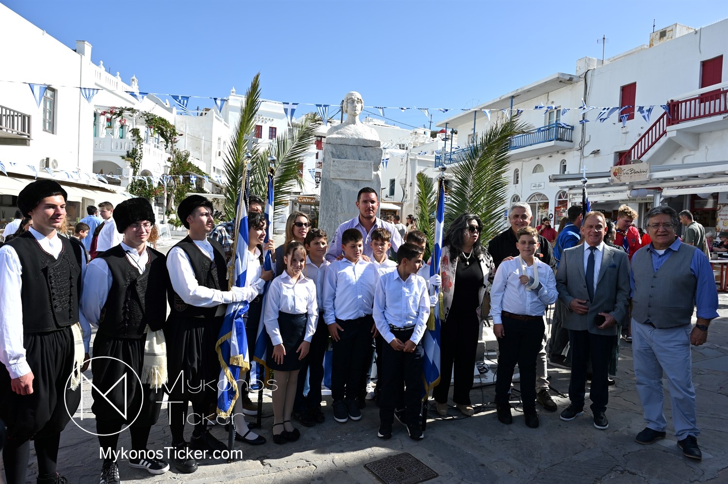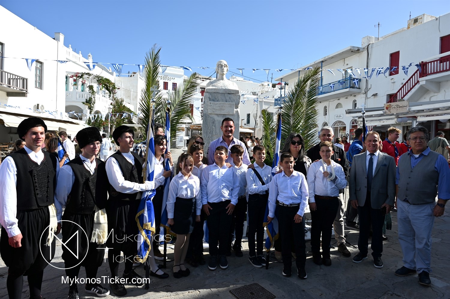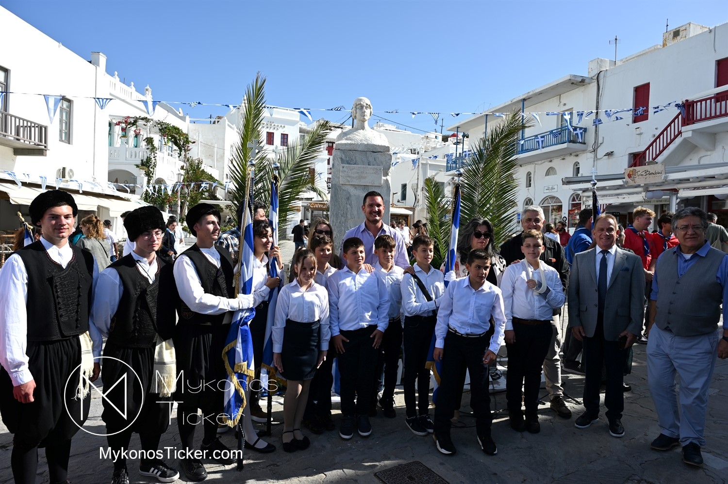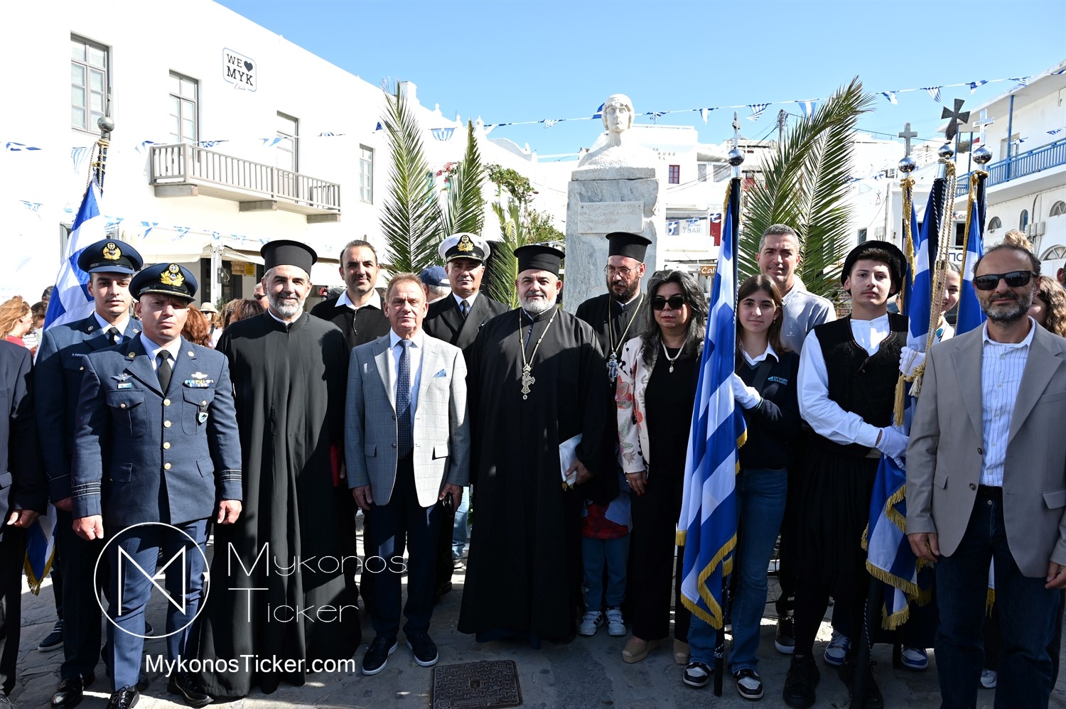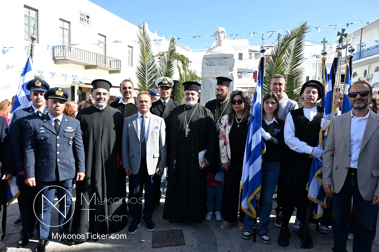 28th of October - “The Ochi Day” / Με λαμπρότητα και συγκίνηση πραγματοποιήθηκαν οι εκδηλώσεις τιμής για την 28η Οκτωβρίου στην Χώρα Μυκόνου, με επιμνημόσυνη δέηση και κατάθεση στεφάνων στην προτομή της Ηρωίδας Μαντούς Μαυρογένους