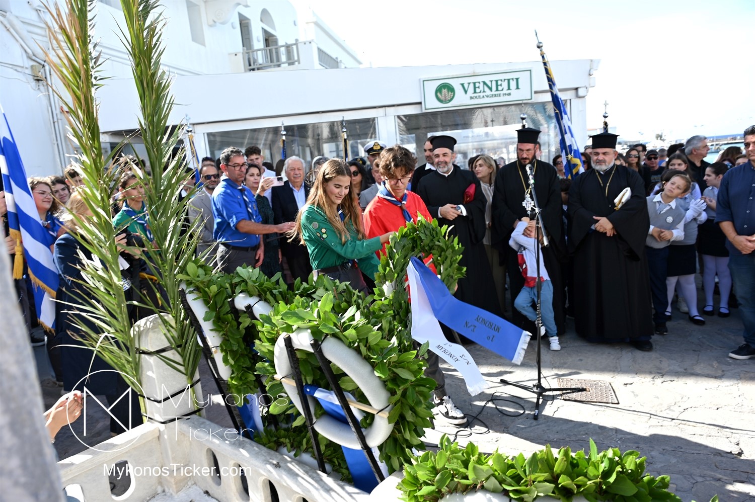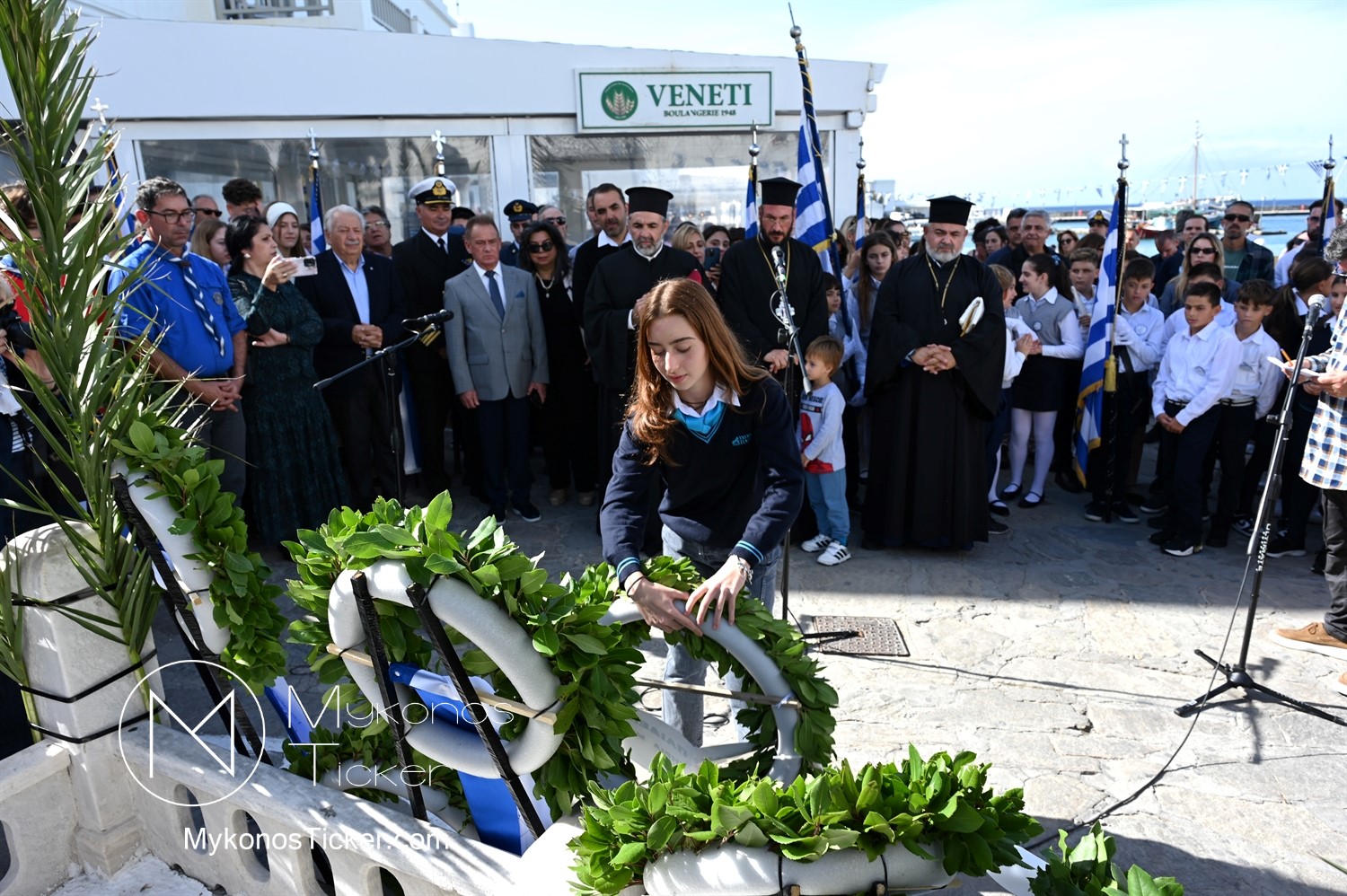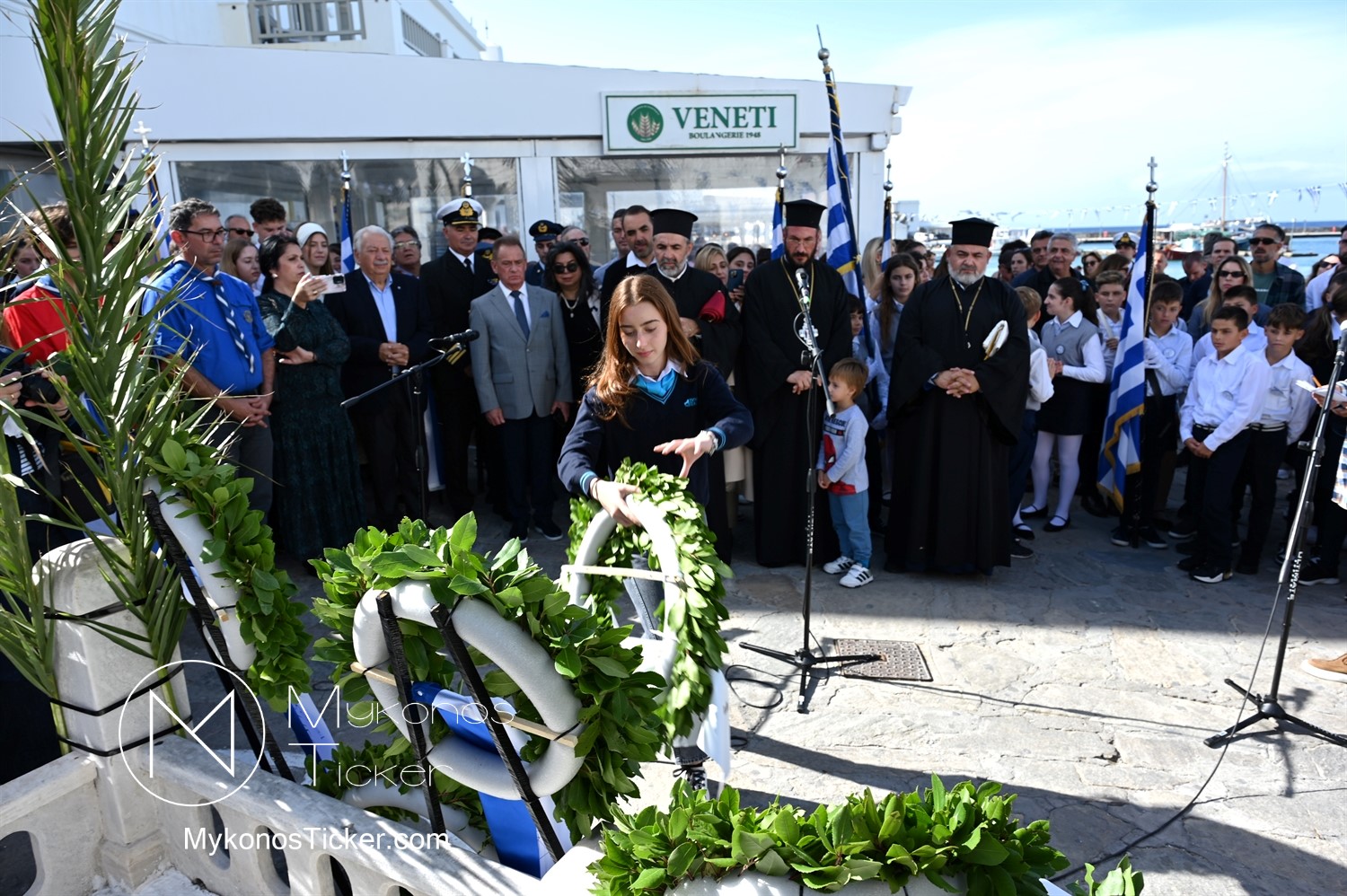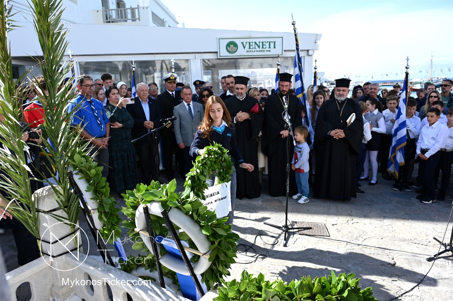 28th of October - “The Ochi Day” / Με λαμπρότητα και συγκίνηση πραγματοποιήθηκαν οι εκδηλώσεις τιμής για την 28η Οκτωβρίου στην Χώρα Μυκόνου, με επιμνημόσυνη δέηση και κατάθεση στεφάνων στην προτομή της Ηρωίδας Μαντούς Μαυρογένους
