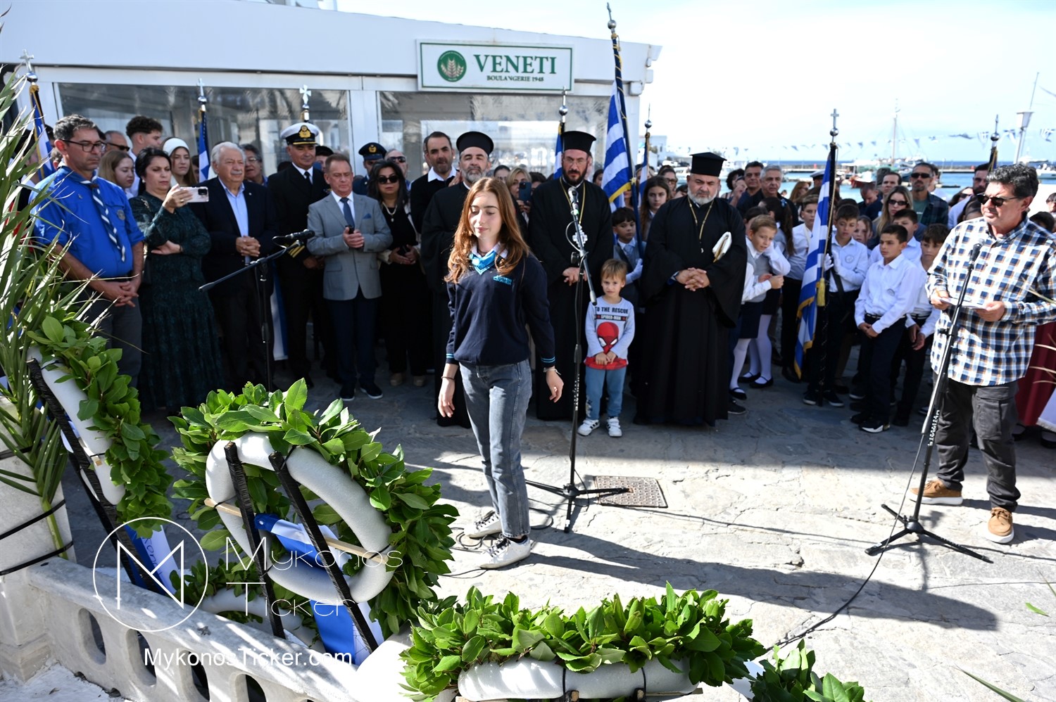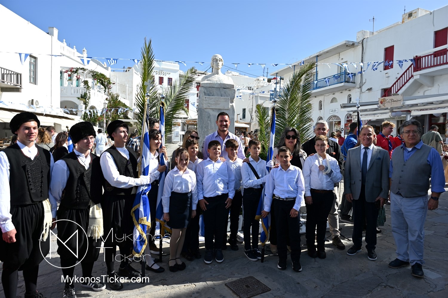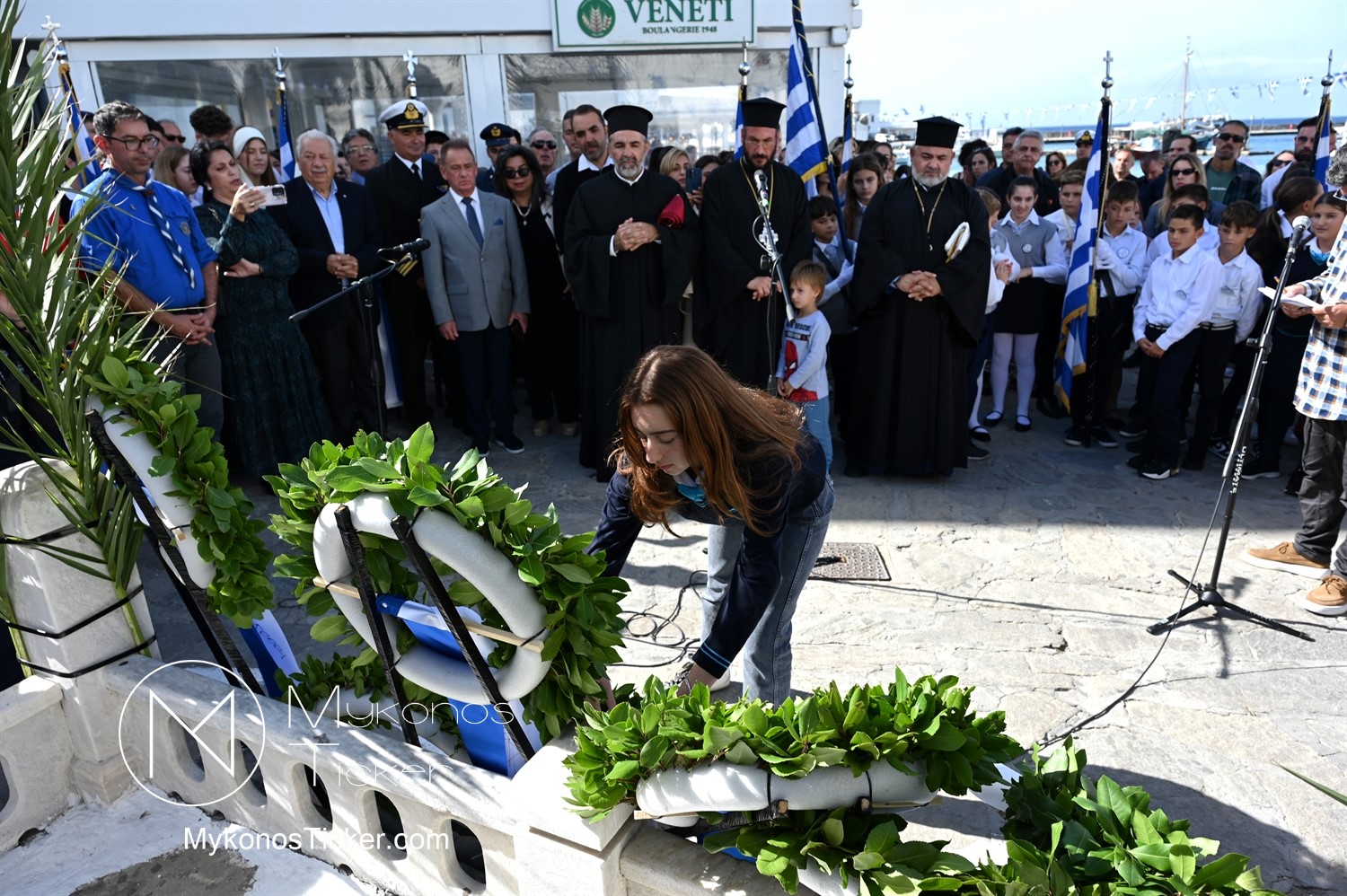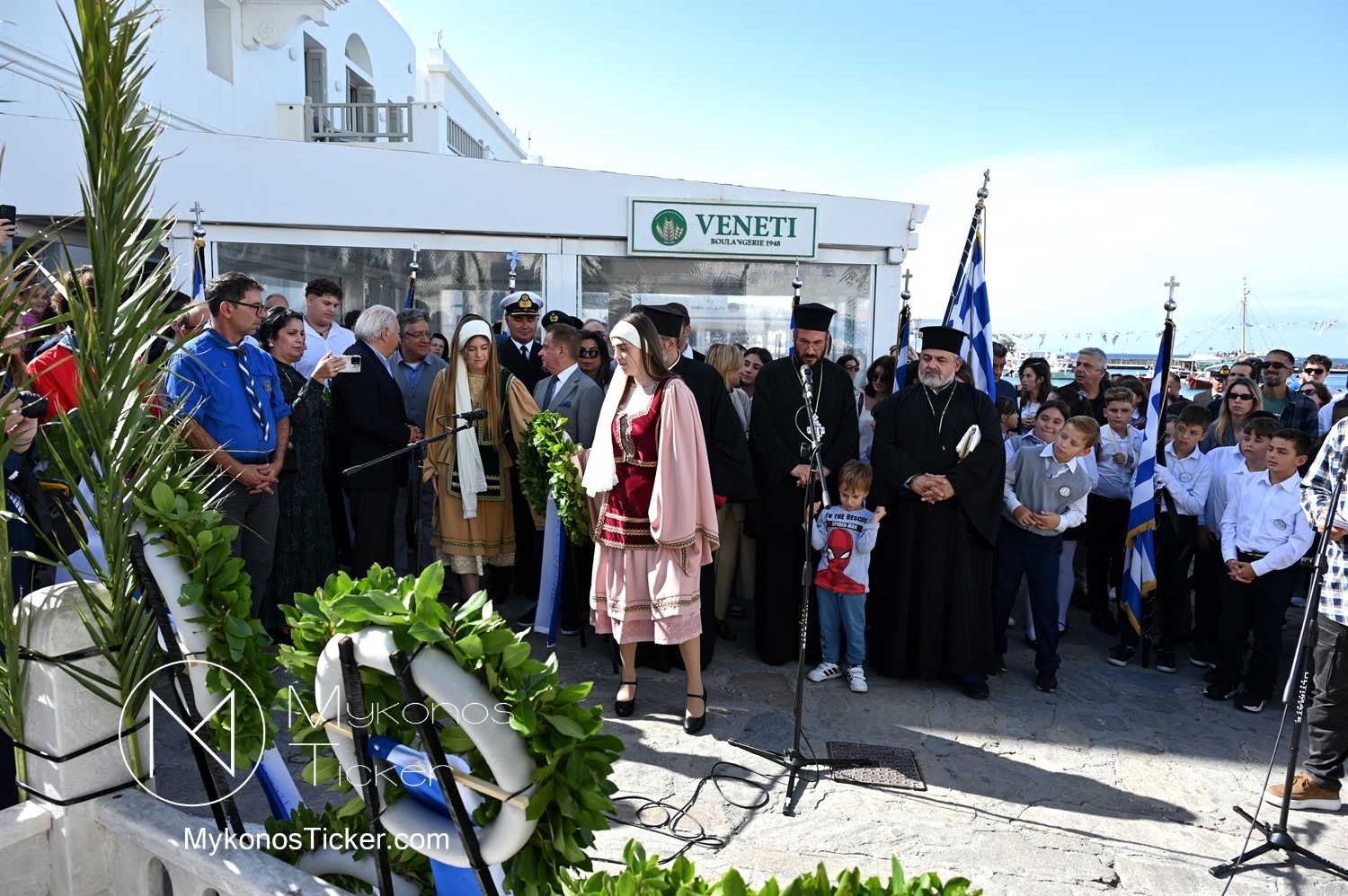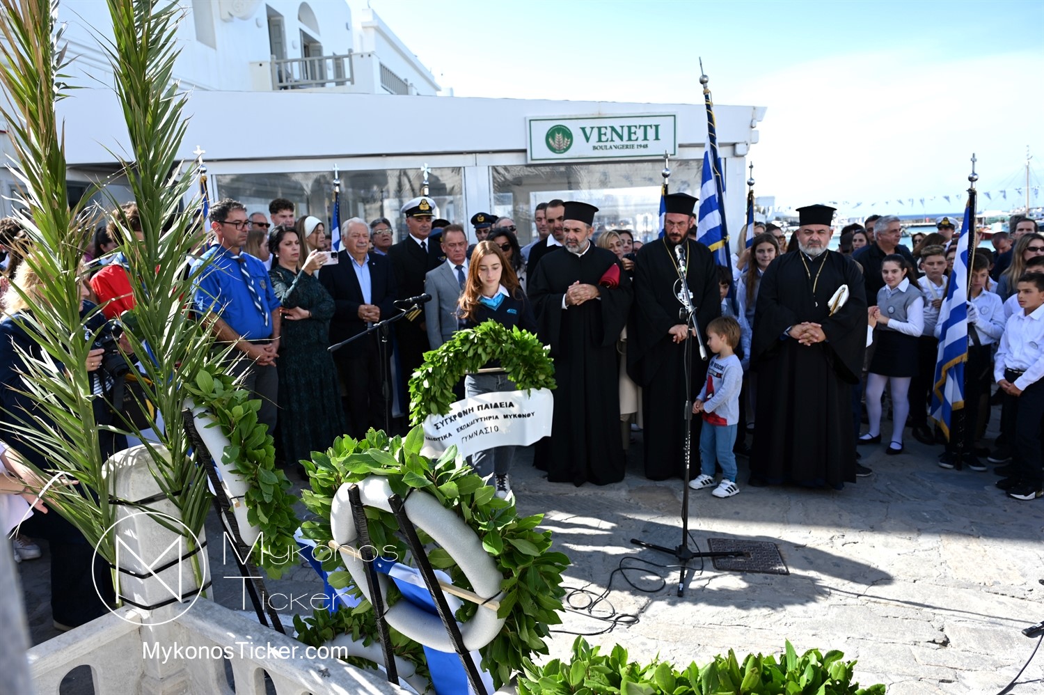 28th of October - “The Ochi Day” / Με λαμπρότητα και συγκίνηση πραγματοποιήθηκαν οι εκδηλώσεις τιμής για την 28η Οκτωβρίου στην Χώρα Μυκόνου, με επιμνημόσυνη δέηση και κατάθεση στεφάνων στην προτομή της Ηρωίδας Μαντούς Μαυρογένους