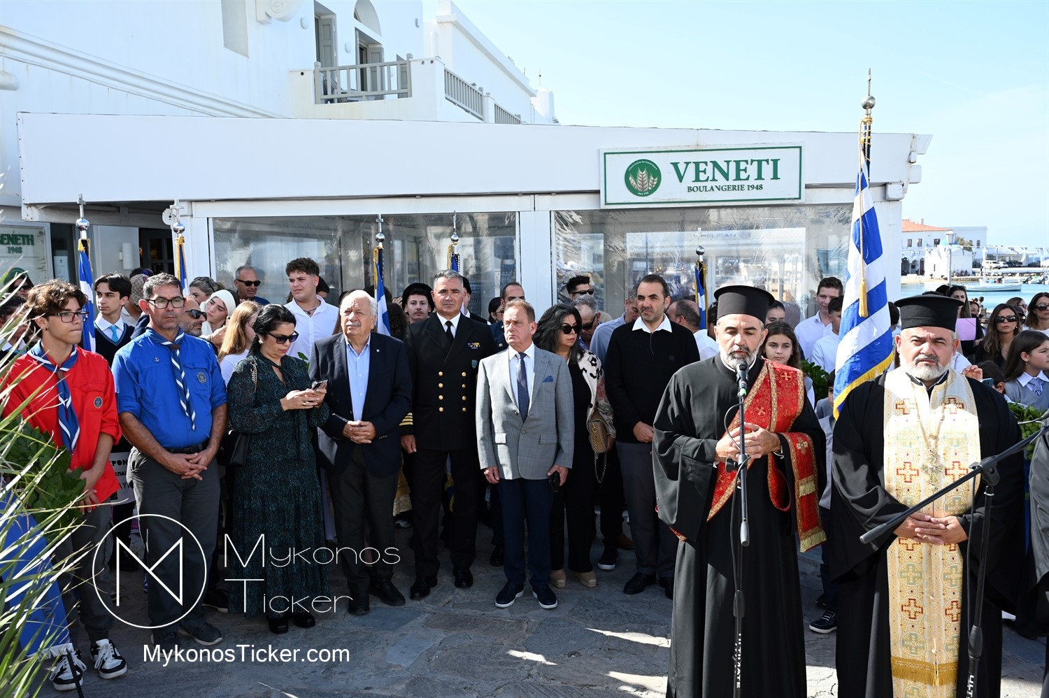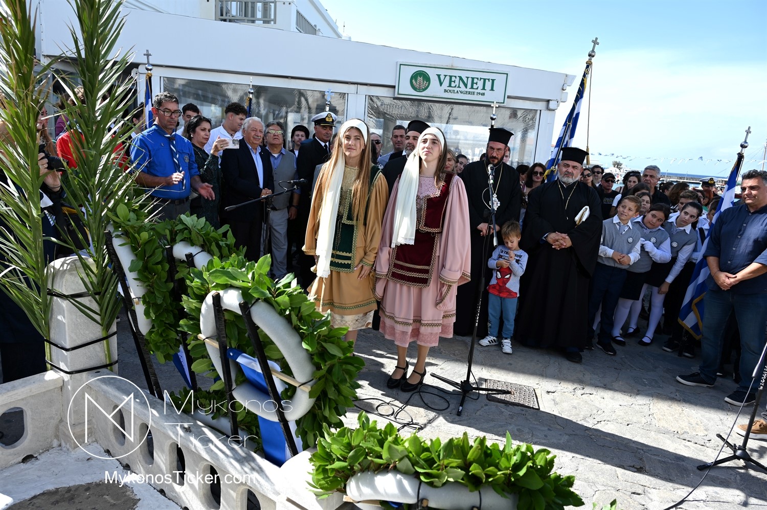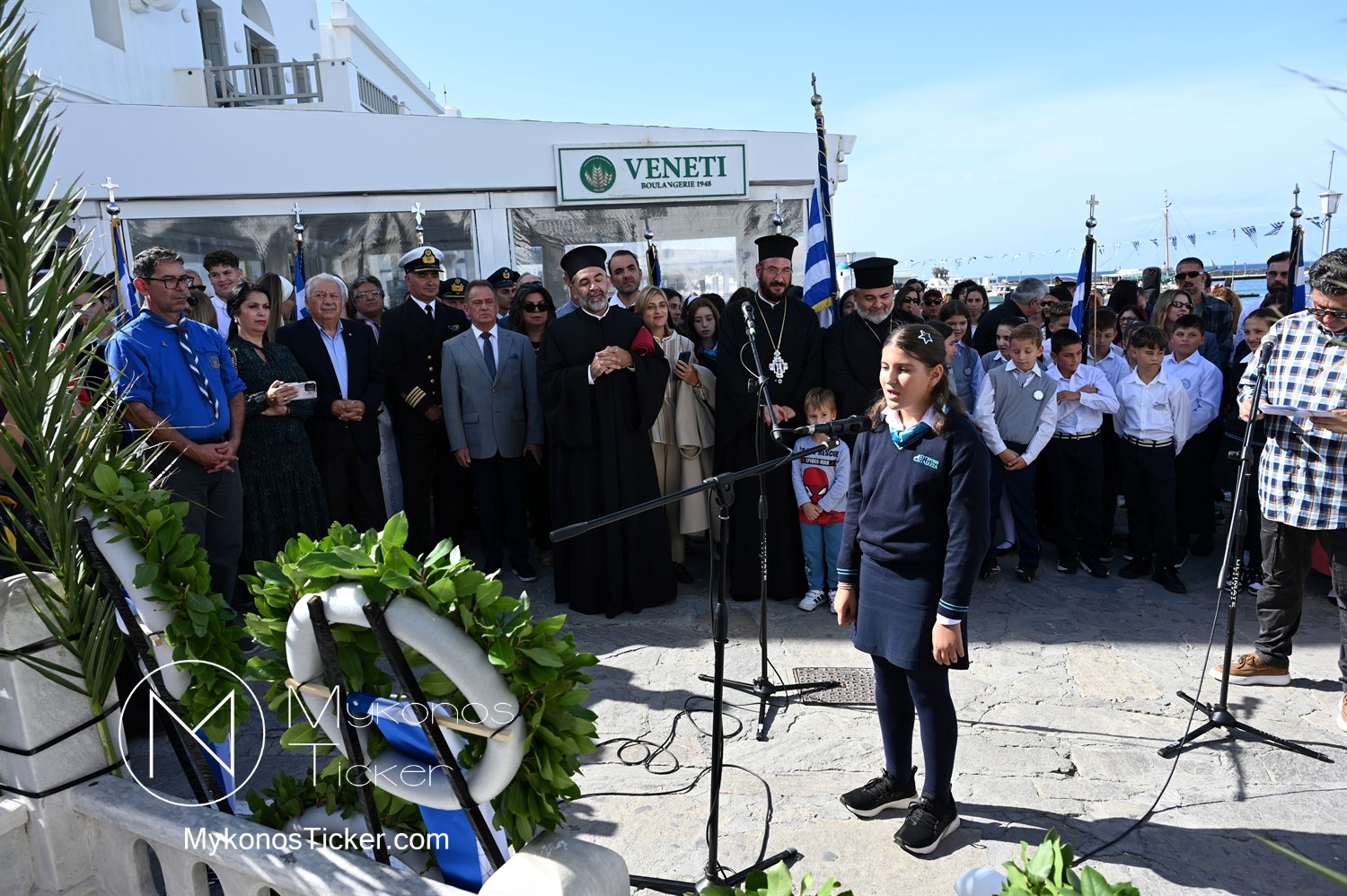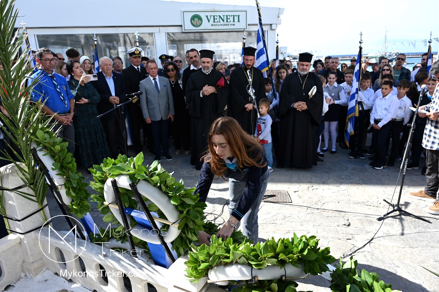 28th of October - “The Ochi Day” / Με λαμπρότητα και συγκίνηση πραγματοποιήθηκαν οι εκδηλώσεις τιμής για την 28η Οκτωβρίου στην Χώρα Μυκόνου, με επιμνημόσυνη δέηση και κατάθεση στεφάνων στην προτομή της Ηρωίδας Μαντούς Μαυρογένους