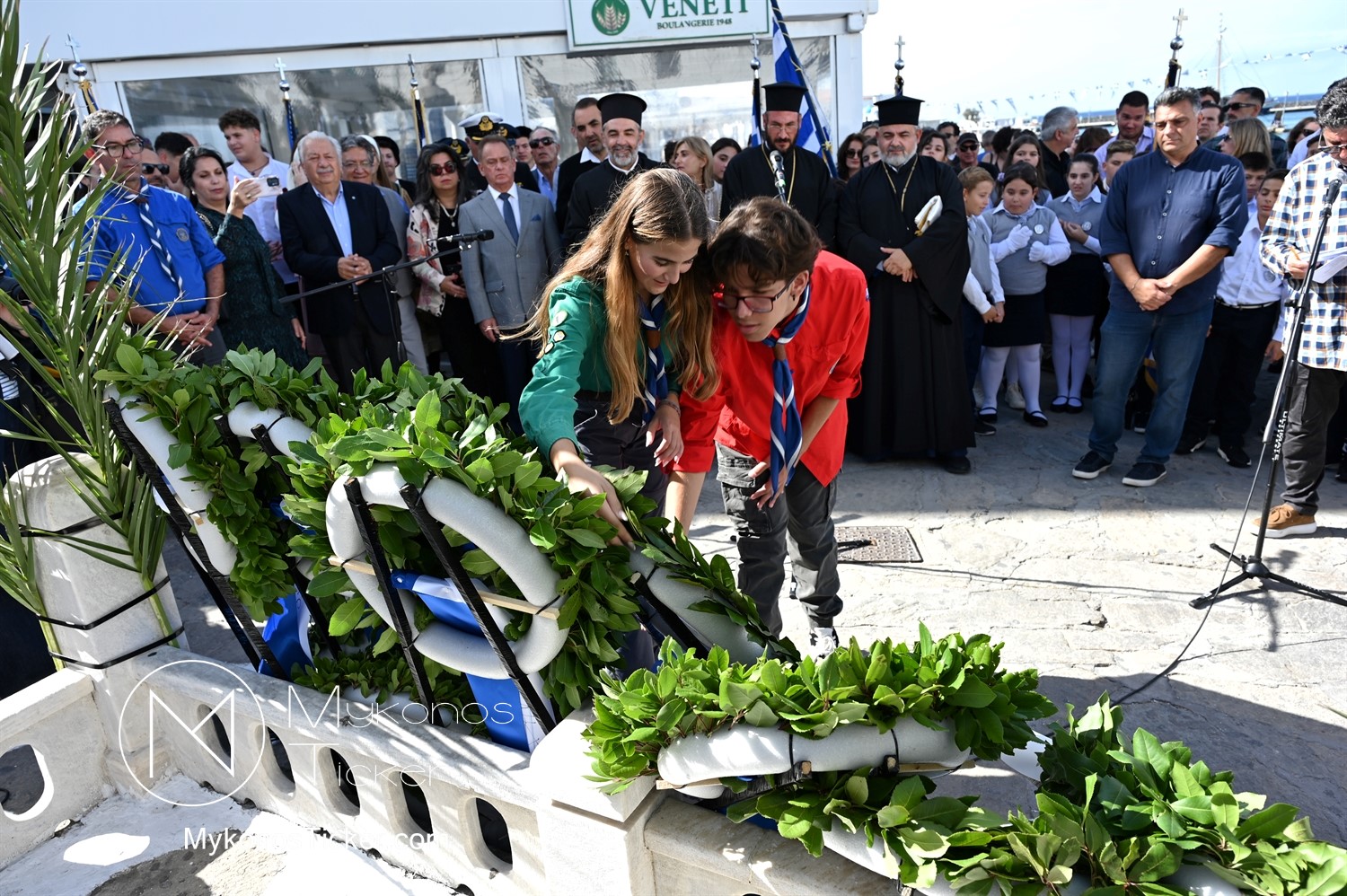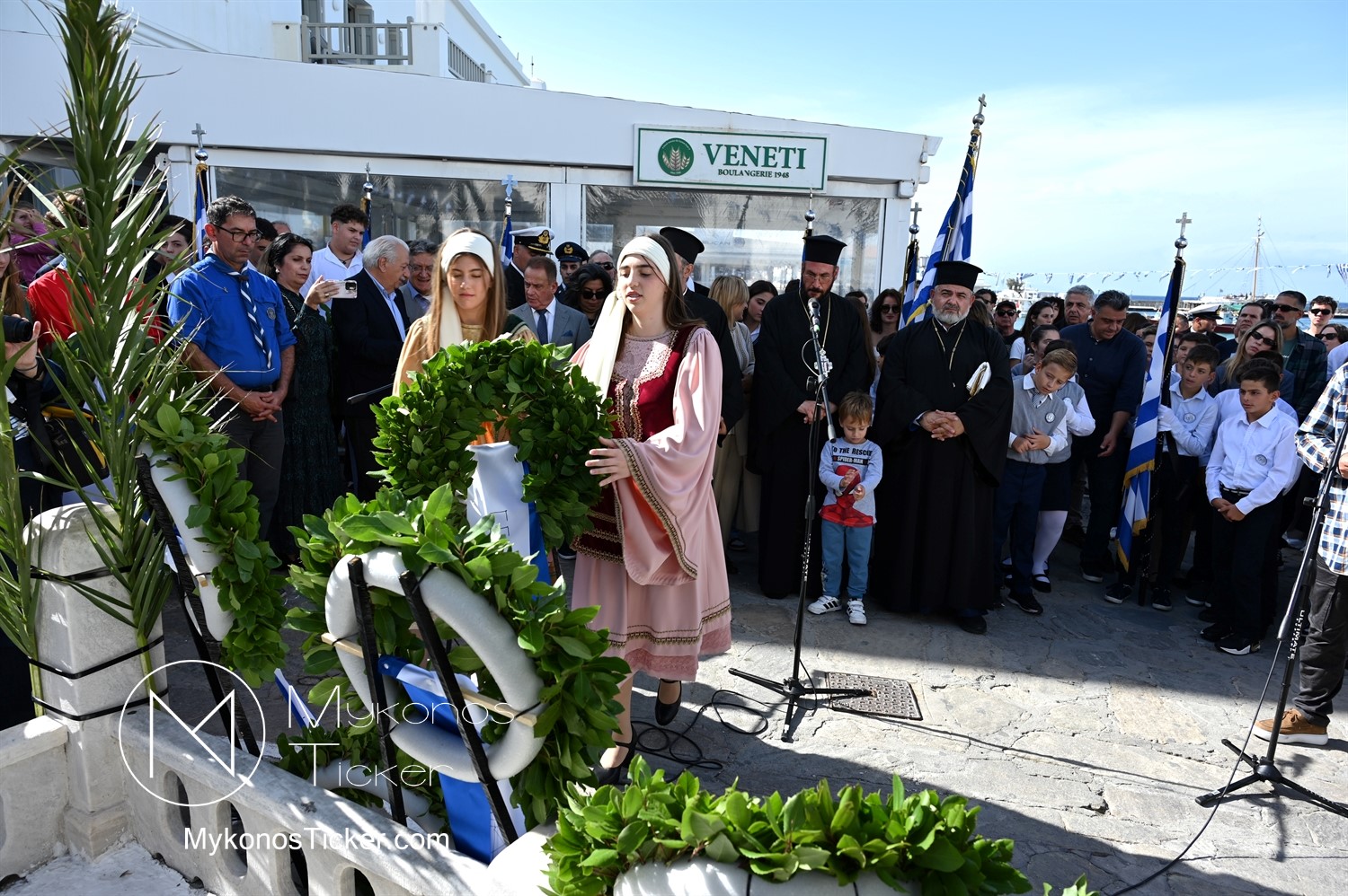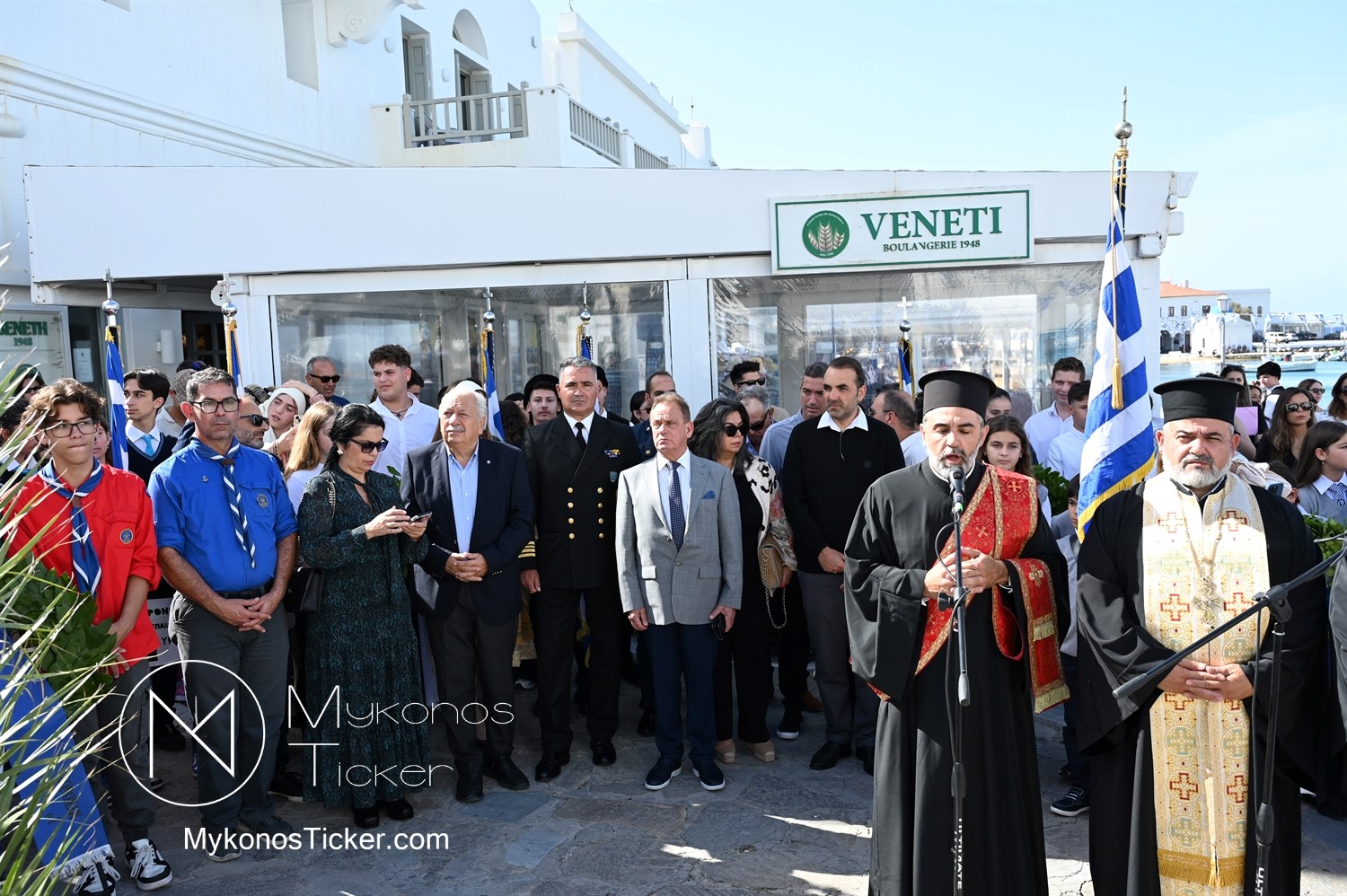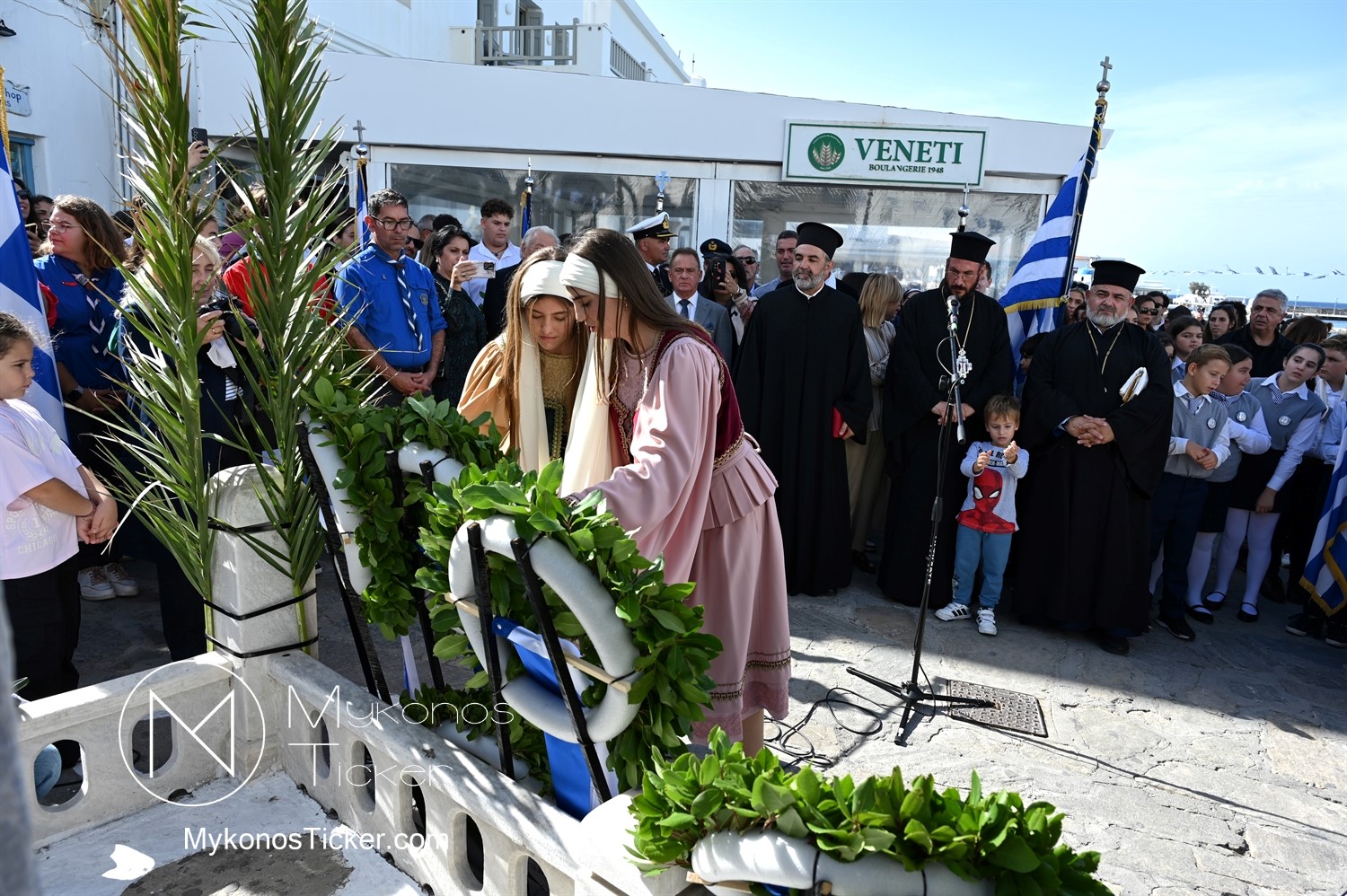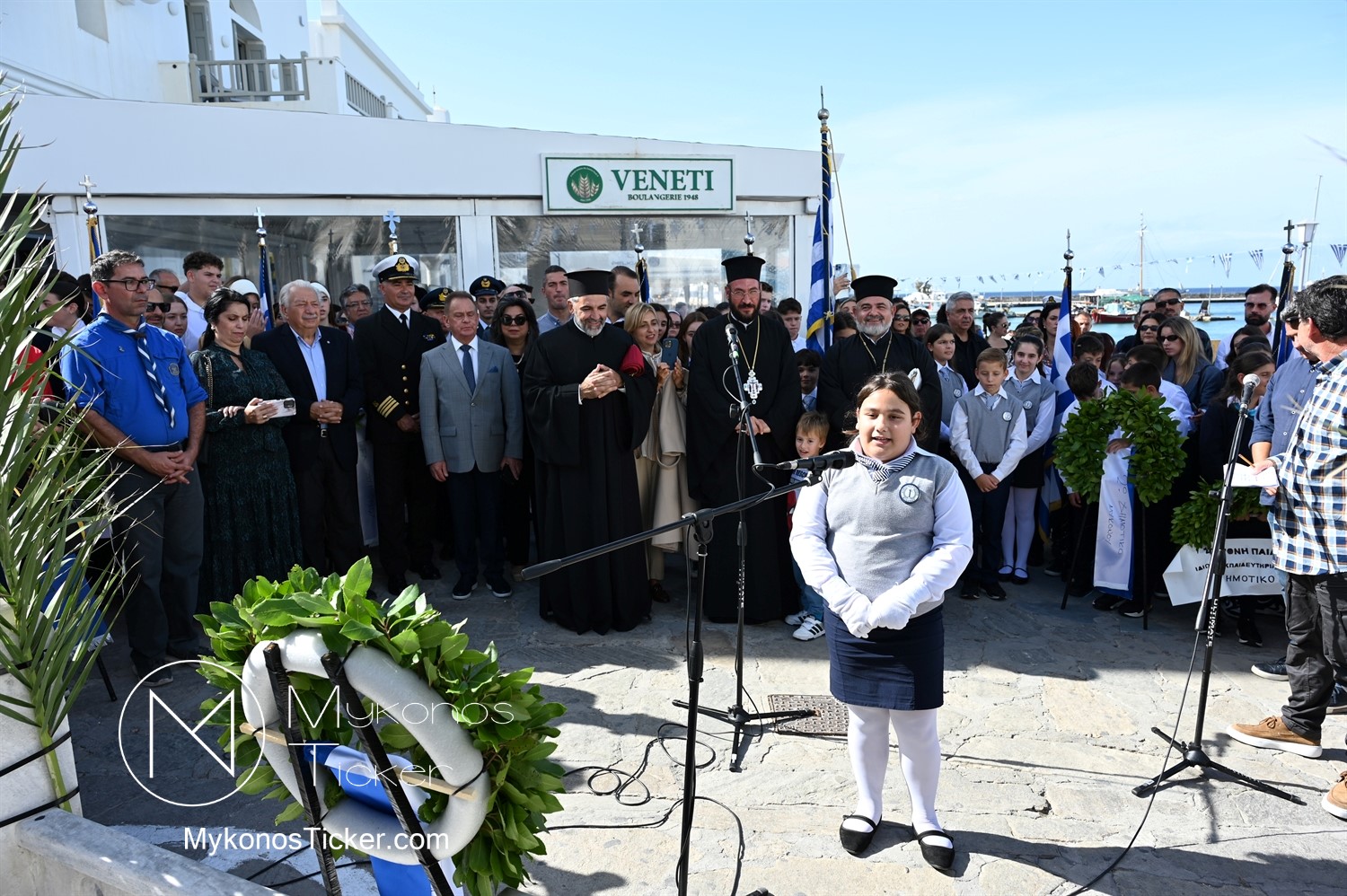 28th of October - “The Ochi Day” / Με λαμπρότητα και συγκίνηση πραγματοποιήθηκαν οι εκδηλώσεις τιμής για την 28η Οκτωβρίου στην Χώρα Μυκόνου, με επιμνημόσυνη δέηση και κατάθεση στεφάνων στην προτομή της Ηρωίδας Μαντούς Μαυρογένους