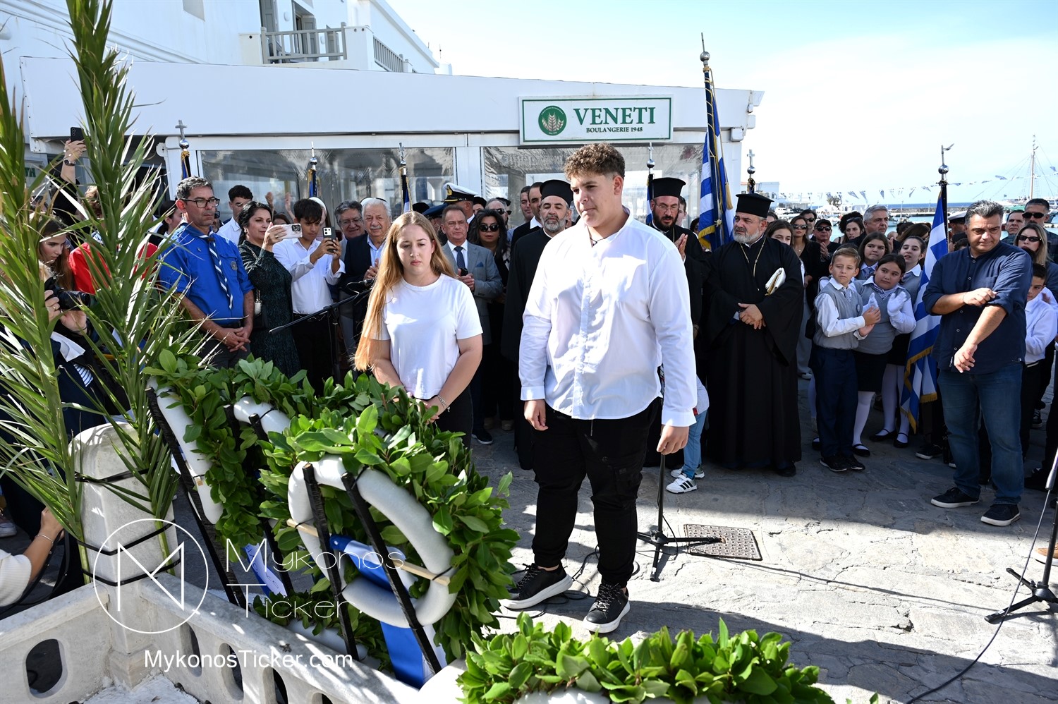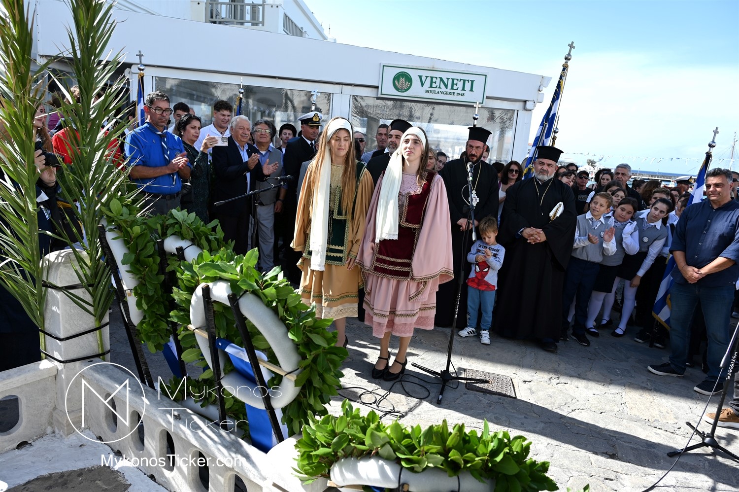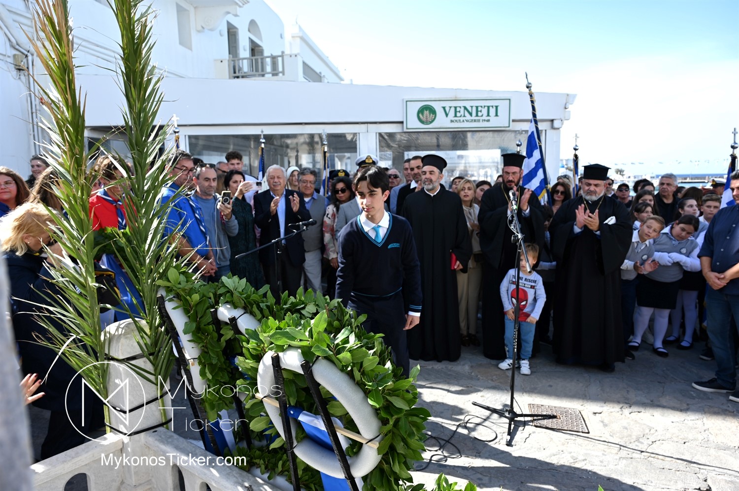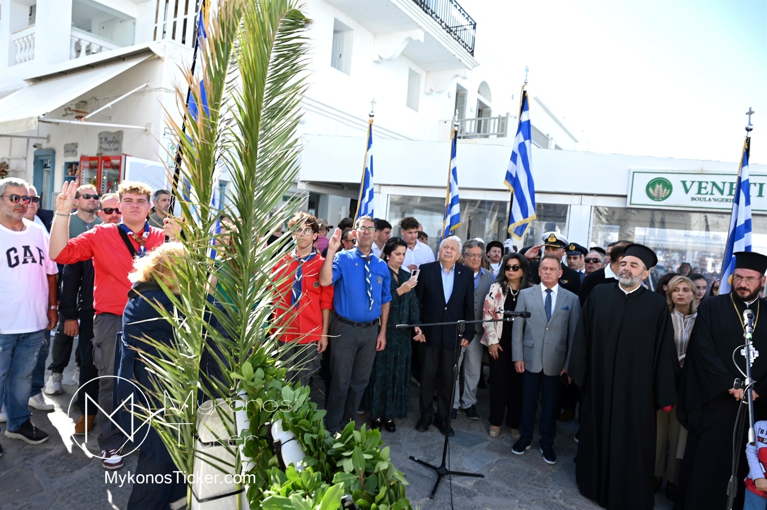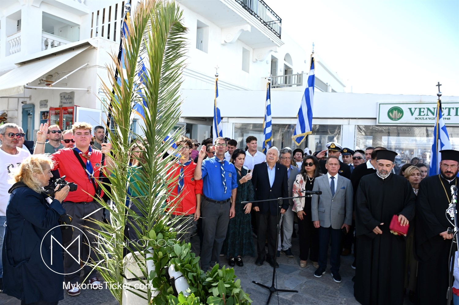 28th of October - “The Ochi Day” / Με λαμπρότητα και συγκίνηση πραγματοποιήθηκαν οι εκδηλώσεις τιμής για την 28η Οκτωβρίου στην Χώρα Μυκόνου, με επιμνημόσυνη δέηση και κατάθεση στεφάνων στην προτομή της Ηρωίδας Μαντούς Μαυρογένους