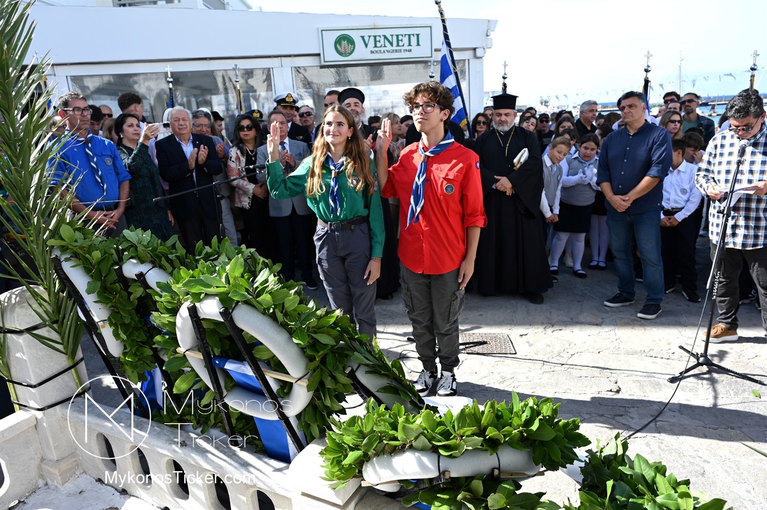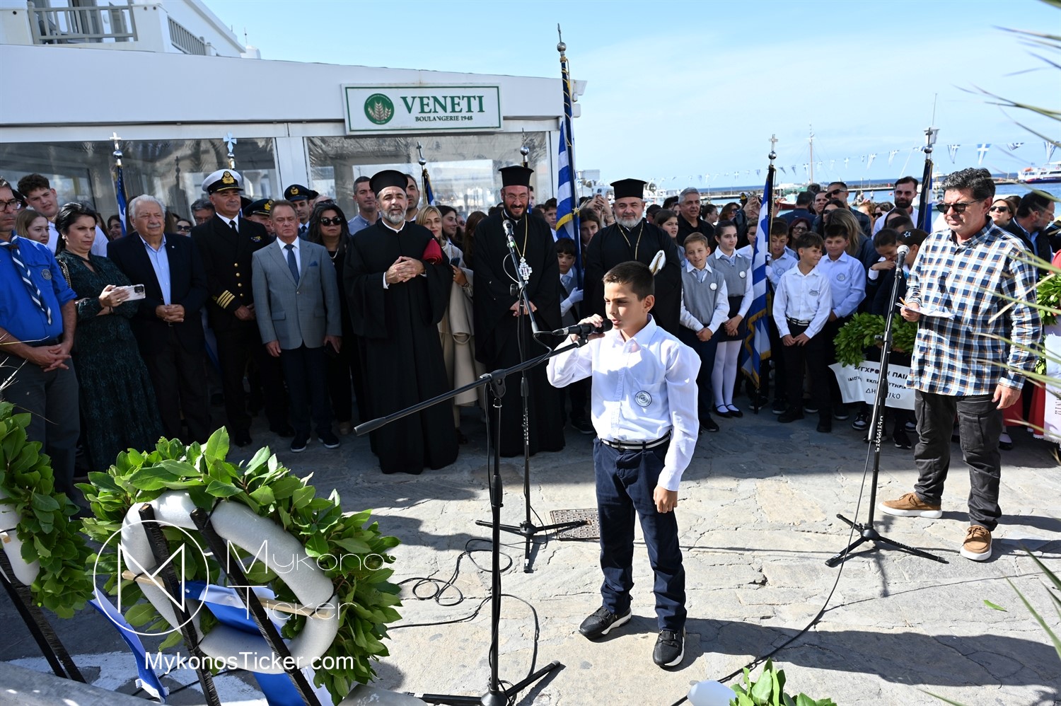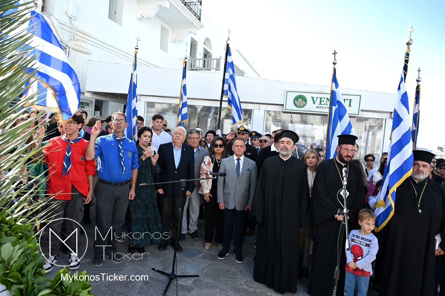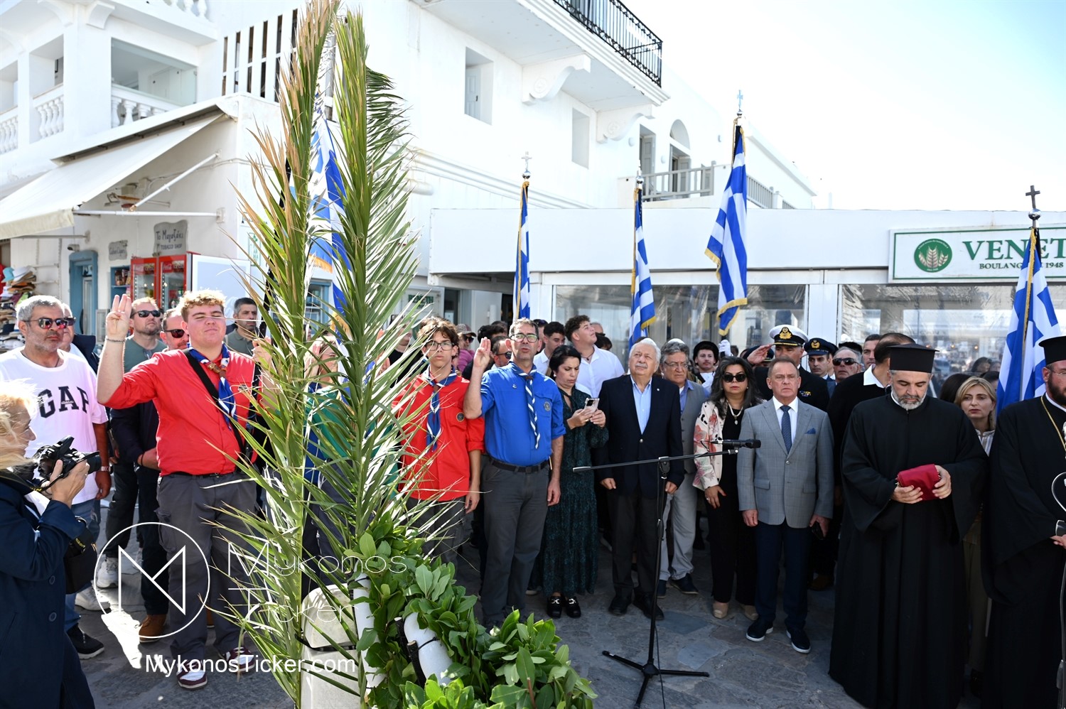 28th of October - “The Ochi Day” / Με λαμπρότητα και συγκίνηση πραγματοποιήθηκαν οι εκδηλώσεις τιμής για την 28η Οκτωβρίου στην Χώρα Μυκόνου, με επιμνημόσυνη δέηση και κατάθεση στεφάνων στην προτομή της Ηρωίδας Μαντούς Μαυρογένους