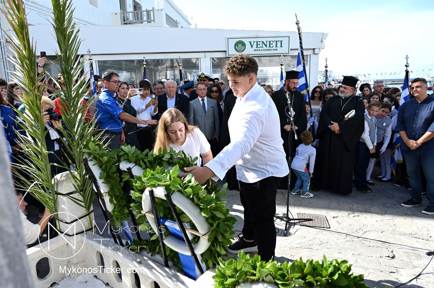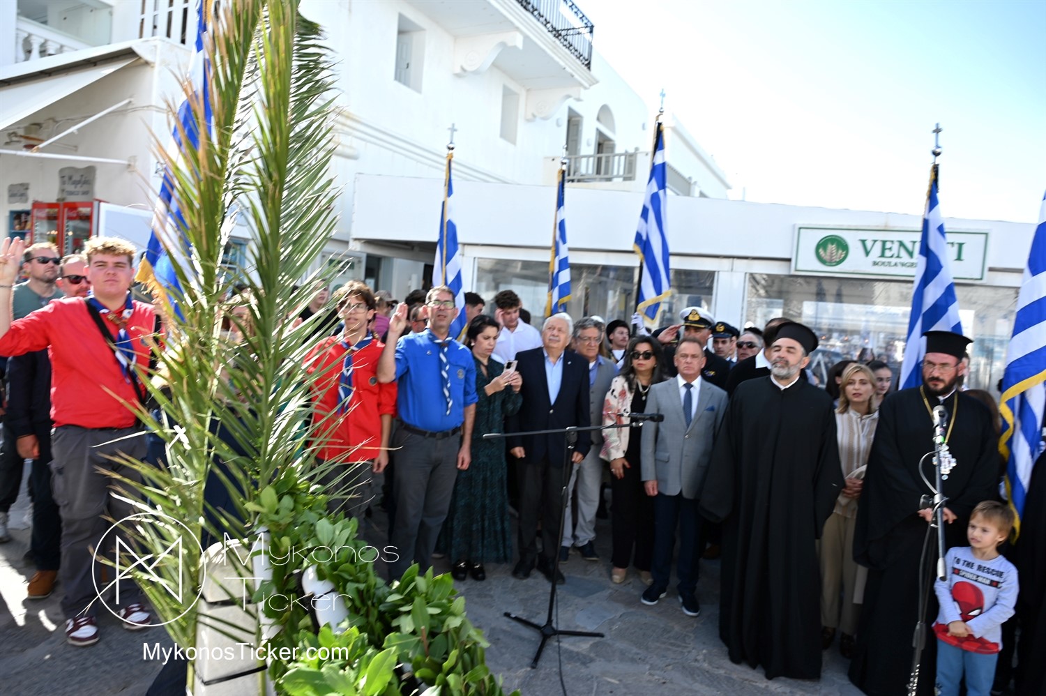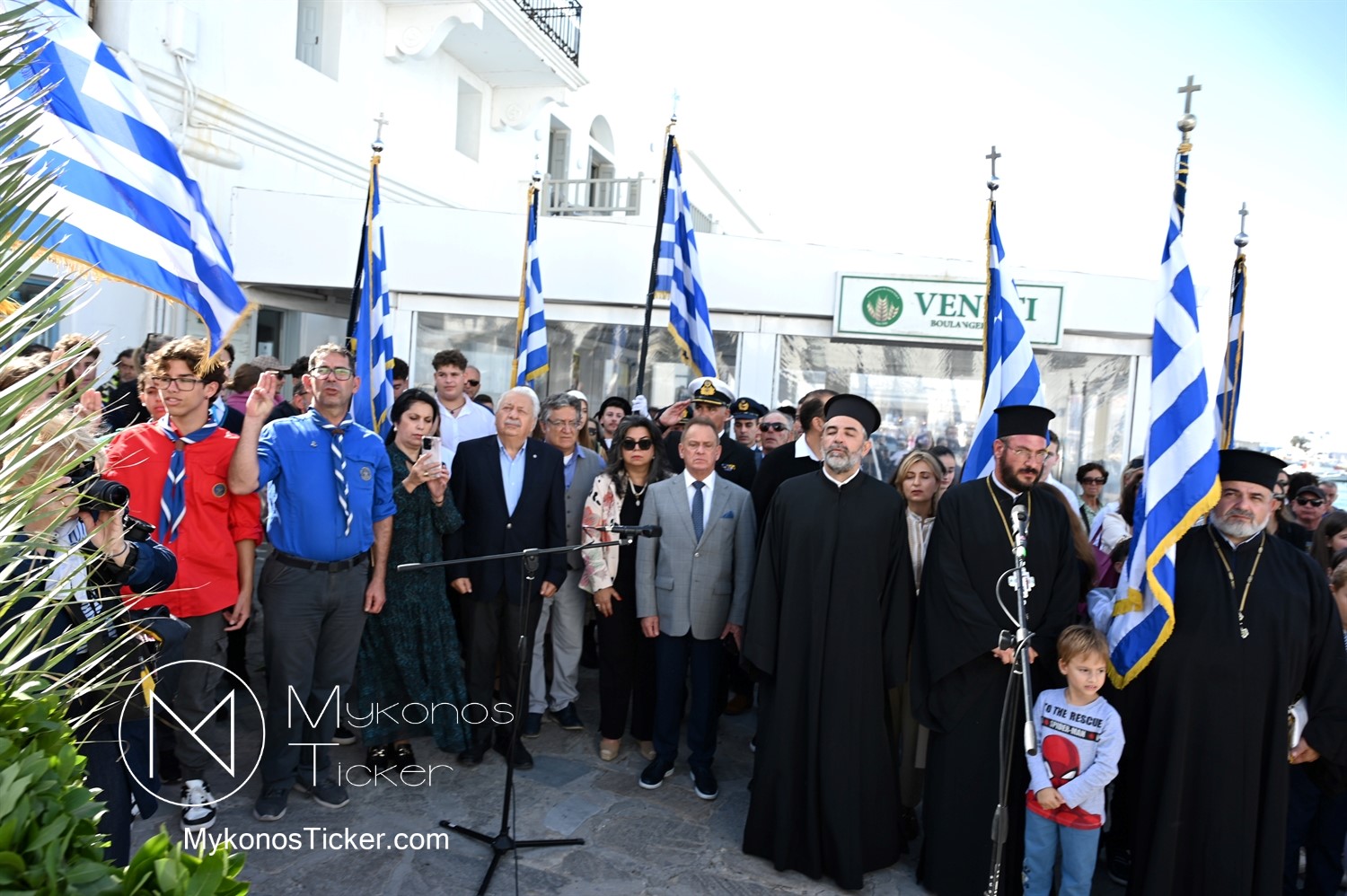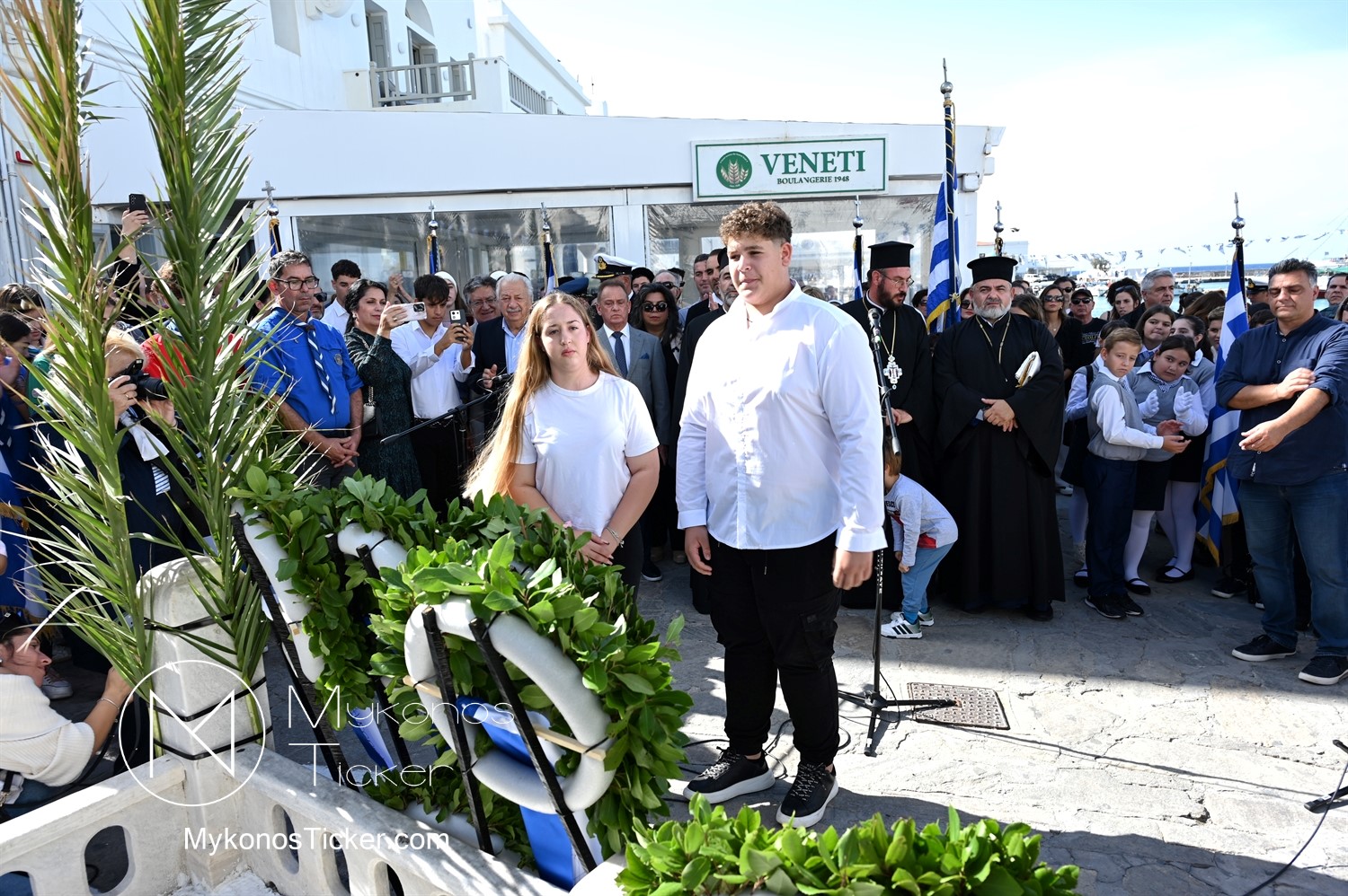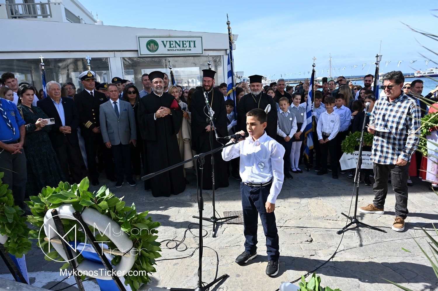 28th of October - “The Ochi Day” / Με λαμπρότητα και συγκίνηση πραγματοποιήθηκαν οι εκδηλώσεις τιμής για την 28η Οκτωβρίου στην Χώρα Μυκόνου, με επιμνημόσυνη δέηση και κατάθεση στεφάνων στην προτομή της Ηρωίδας Μαντούς Μαυρογένους