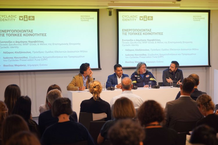 Ο κ. Καραβέλλας υπογράμμισε ότι οι πιέσεις που δέχονται οι Κυκλάδες —υπερτουρισμός, ανεξέλεγκτη δόμηση, κλιματική κρίση, απώλεια βιοποικιλότητας και αδυναμία εφαρμογής των νόμων— απαιτούν όχι μόνο πολιτικές παρεμβάσεις, αλλά και αφύπνιση και ενεργό συμμετοχή των τοπικών κοινωνιών. Το Cycladic Identity, όπως σημείωσε, δημιουργήθηκε για να στηρίξει ακριβώς τέτοιες πρωτοβουλίες.