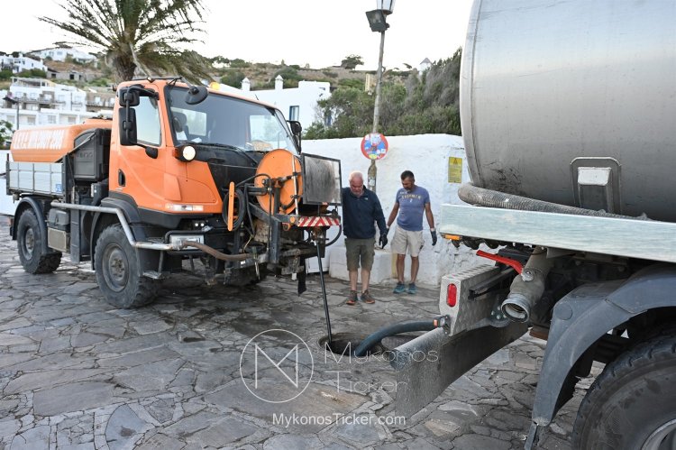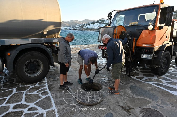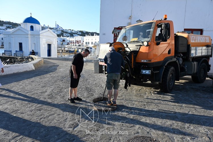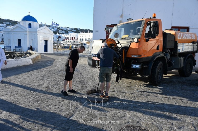 ΔΕΥΑ Μυκόνου / Προληπτικός καθαρισμός φρεατίων - αγωγών απoxέτευσηs με υδροβολή και αντλιοστασίου λυμάτων στην Παραλία Xώpας Mυκόvoυ