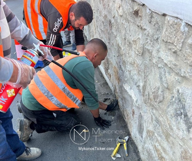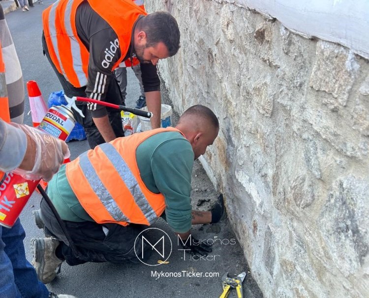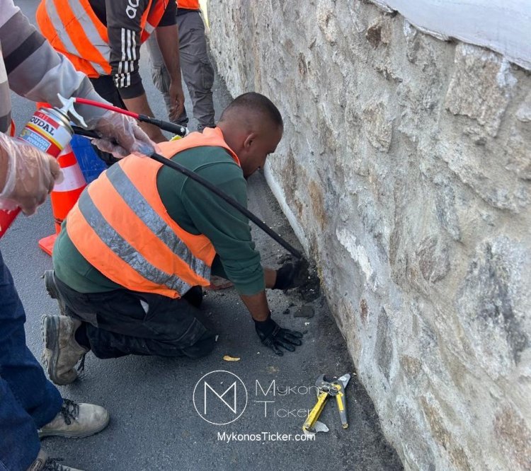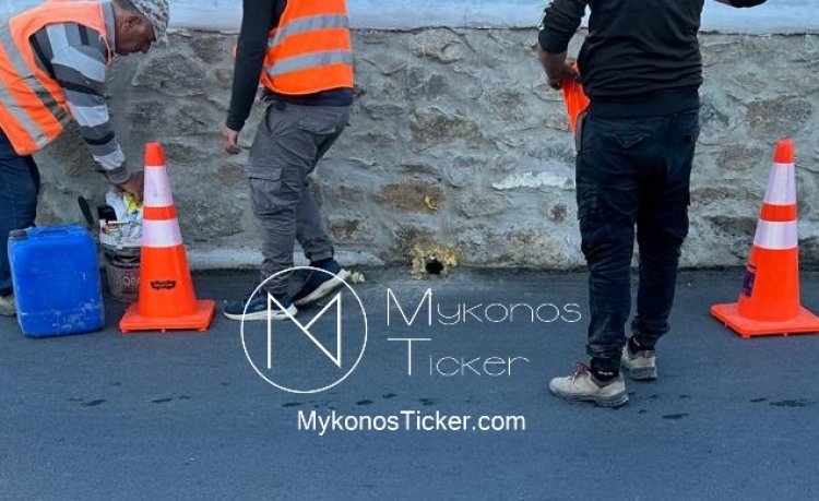 Αμέσως μόλις ανέκυψε το πρόβλημα η κινητοποίηση της ΔΕΥΑ Μυκόνου ήταν άμεση και συνεργείο της έσπευσε στο σημείο και προχώρησε στη σφράγιση, της εξόδου νερού, του παράνομου σωλήνα.