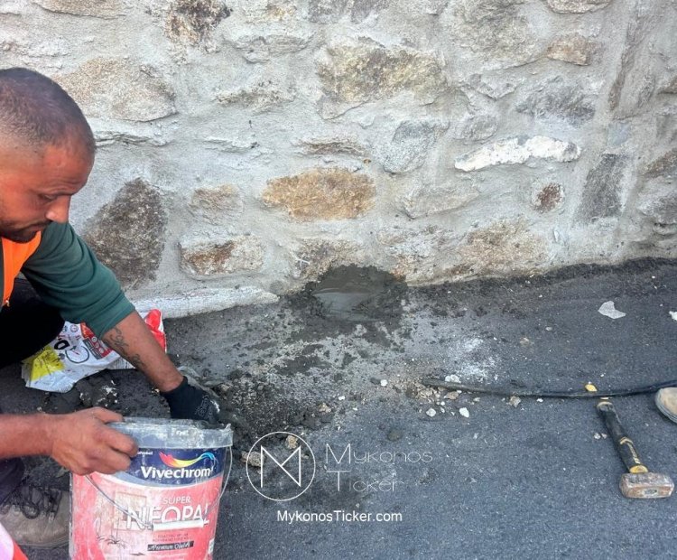 ΔΕΥΑ Μυκόνου / Σε παράνομο σωλήνα από κτιριακό συγκρότημα οφείλεται η διαρροή νερού στην Πλατεία Φάμπρικας