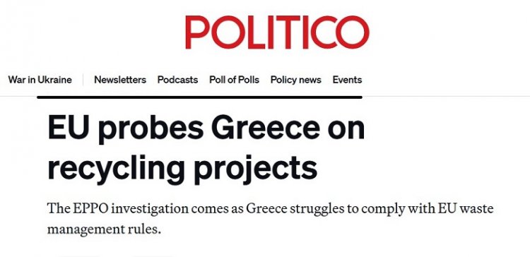 EU probes Greece on recycling projects / Η Ευρωπαϊκή Εισαγγελία ερευνά την Ελλάδα για πιθανή κακοδιαχείριση Ευρωπαϊκών κονδυλίων που προορίζονταν για την ανακύκλωση [Politico]