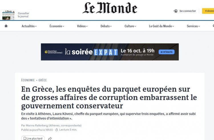 Η εφημερίδα Le Monde επισημαίνει ότι η αποκάλυψη τον Μάιο από την Ευρωπαϊκή Εισαγγελία του σκανδάλου υπεξαίρεσης πόρων της ΚΑΠ μέσω του ΟΠΕΚΕΠΕ, δεν βελτίωσε τις σχέσεις μεταξύ Αθήνας και Ευρωπαϊκής Εισαγγελίας.