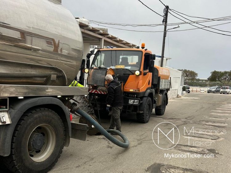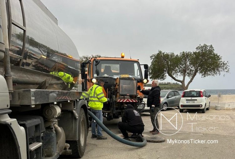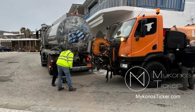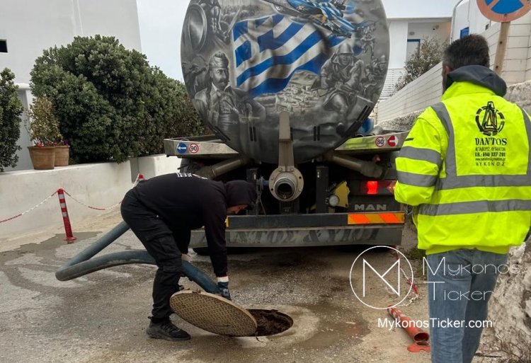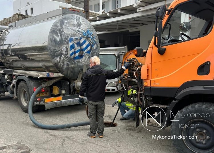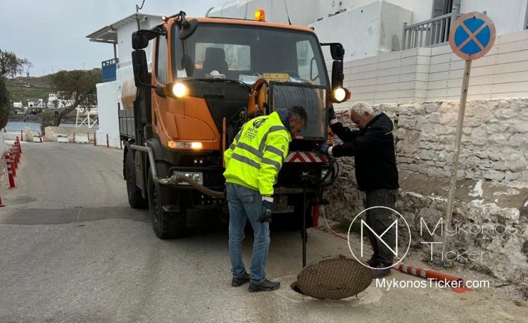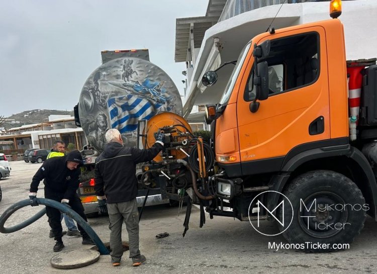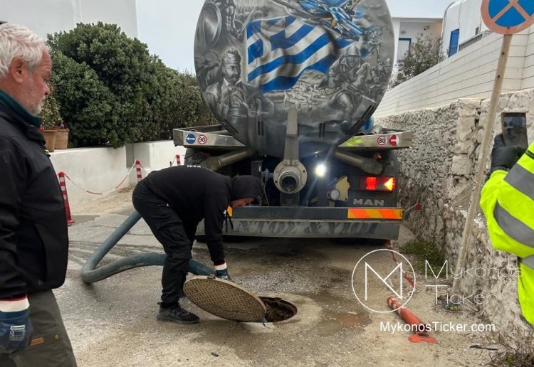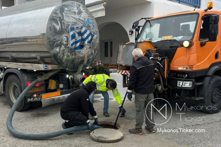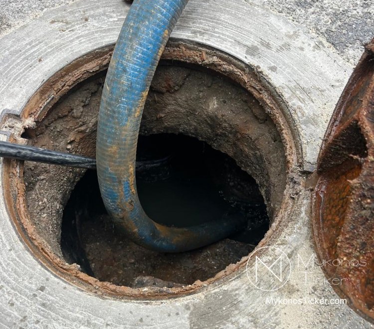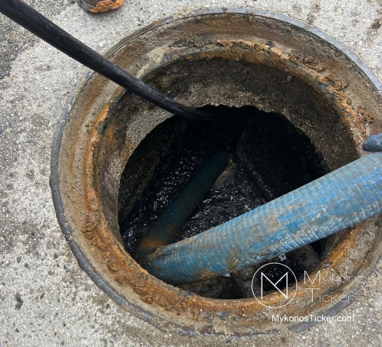 Ορνός Μυκόνου: Δείτε τις φωτογραφίες από τον επιχειρησιακό καθαρισμό του δικτύου λυμάτων στην καρδιά της Τουριστικής Ζώνης