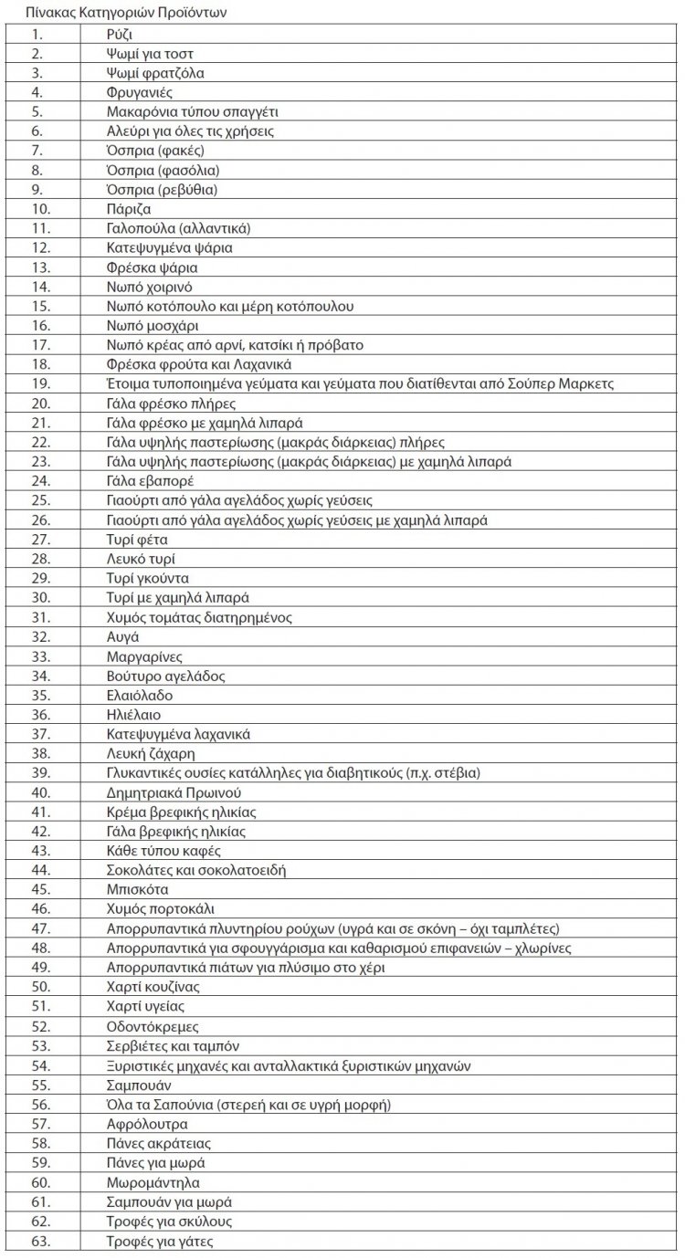 Η λίστα των προϊόντων που μπαίνει πλαφόν