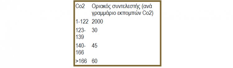 Νέα κλίμακα βάσει Co2 (για οχήματα που έχουν ταξινομηθεί από 1/11/2010)