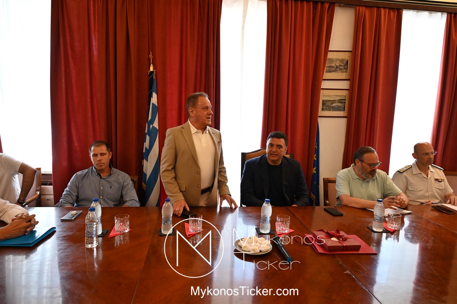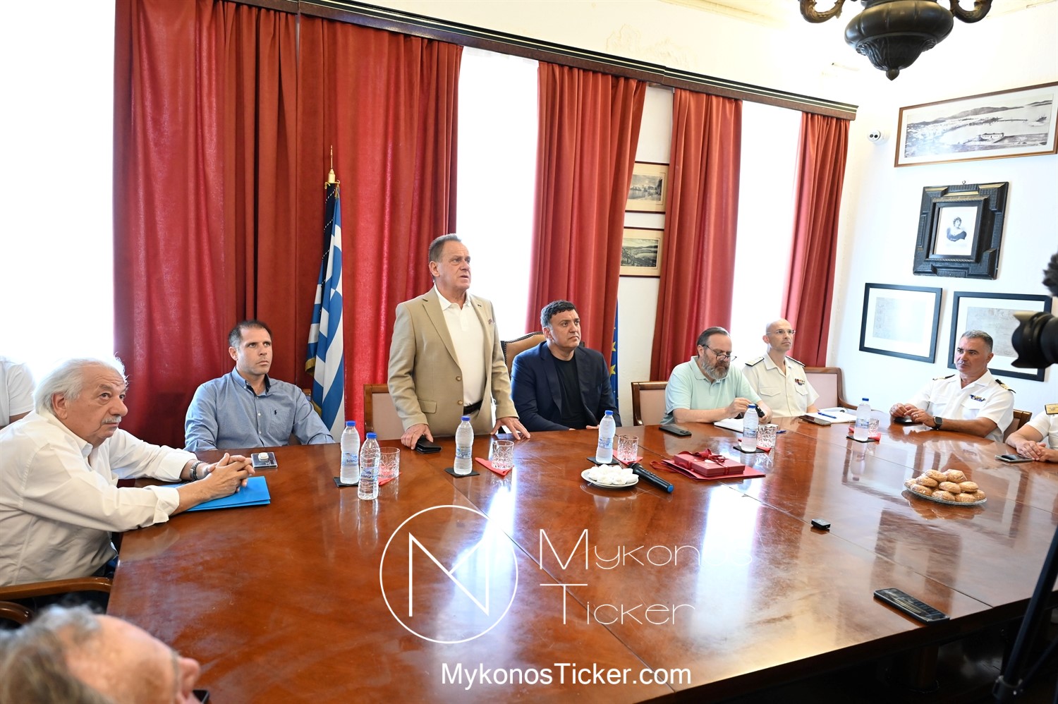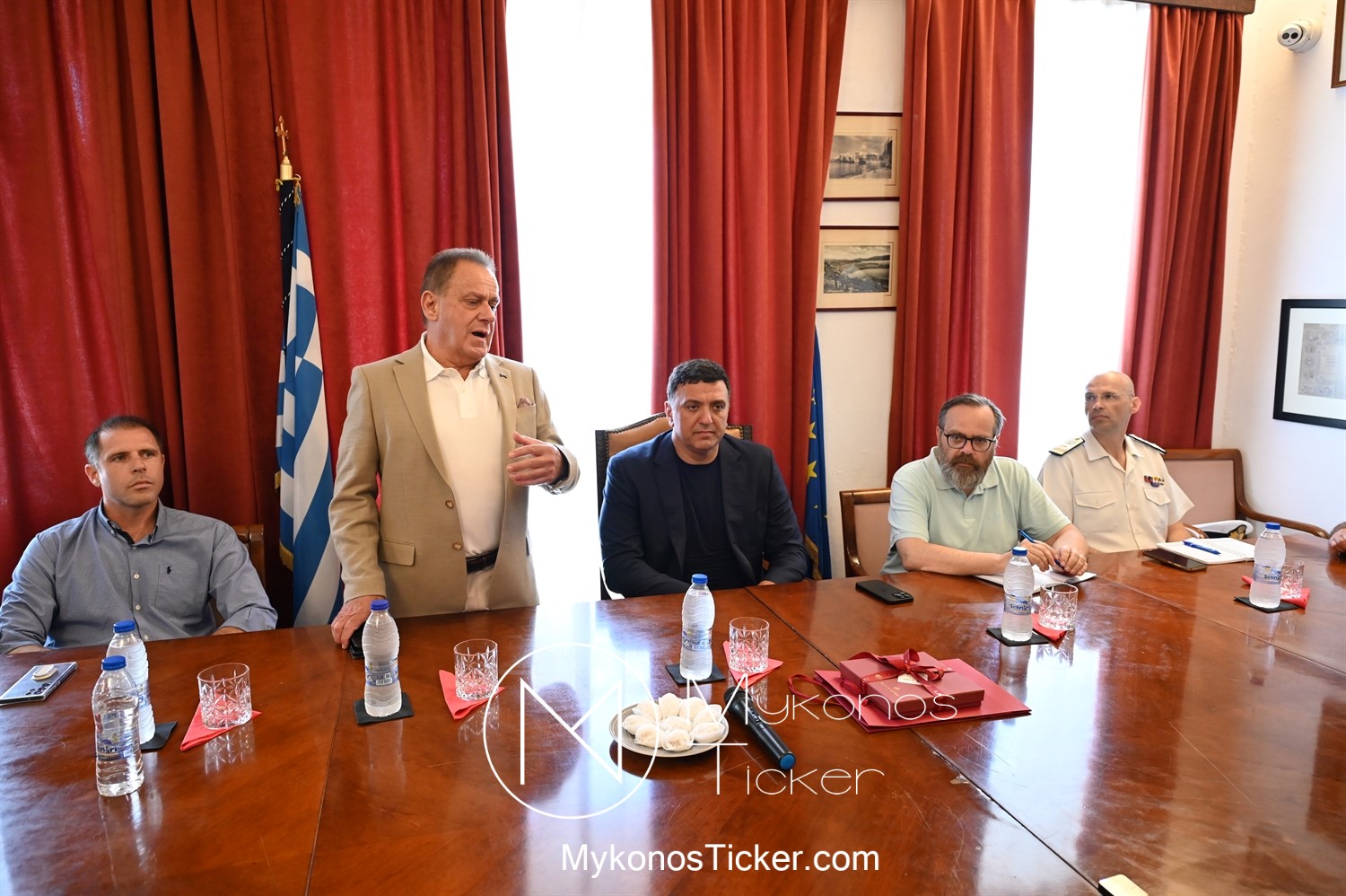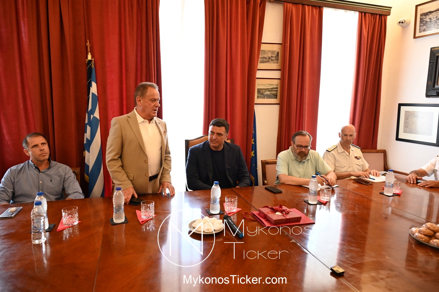 Η διασυνδεσιμότητα του Παλαιού με τον Νέο Λιμένα και η υλοποίηση λιμενικών υποδομών με κλειστό κολυμβητήριο καθώς και ζητήματα που αφορούν την νησιωτική πολιτική, την ασφάλεια, και την ανάπτυξη του νησιού, με έμφαση στις προκλήσεις της θερινής περιόδου, βρέθηκαν στο επίκεντρο της επίσκεψης εργασίας του υπουργού Εμπορικής Ναυτιλίας και Νησιωτικής Πολιτικής, Βασίλη Κικίλια και στη συνάντηση που είχε με τον Δήμαρχο Μυκόνου, Χρήστο Βερώνη και την συμμετοχή εκπροσώπων της Τοπικής Αυτοδιοίκησης και στελεχών του Λιμενικού Σώματος.