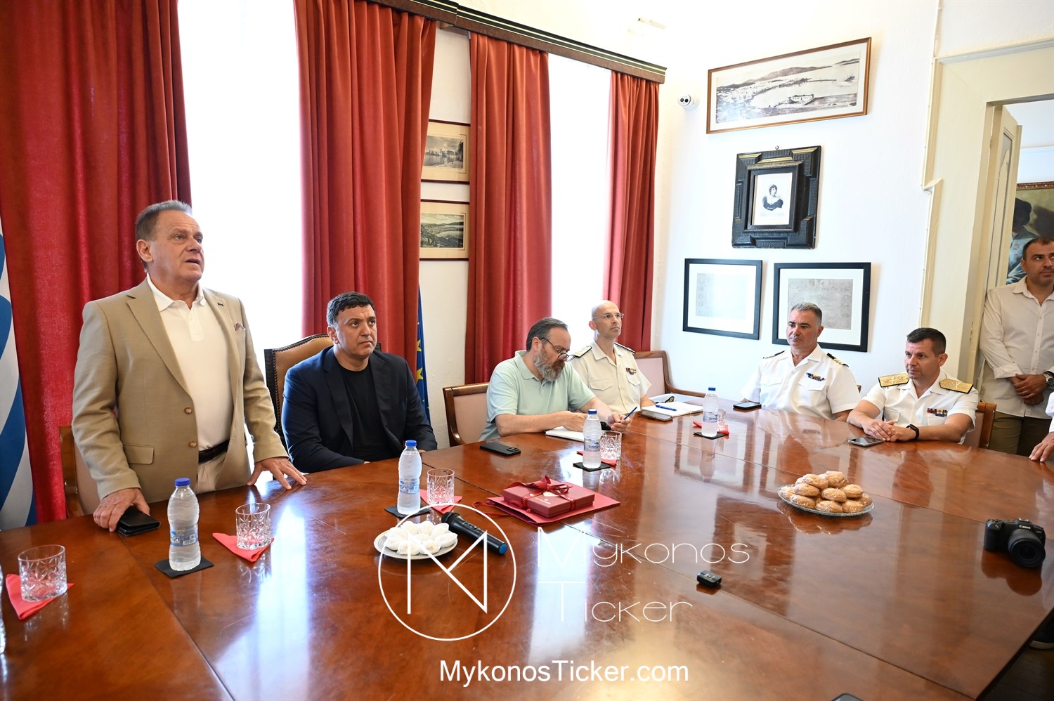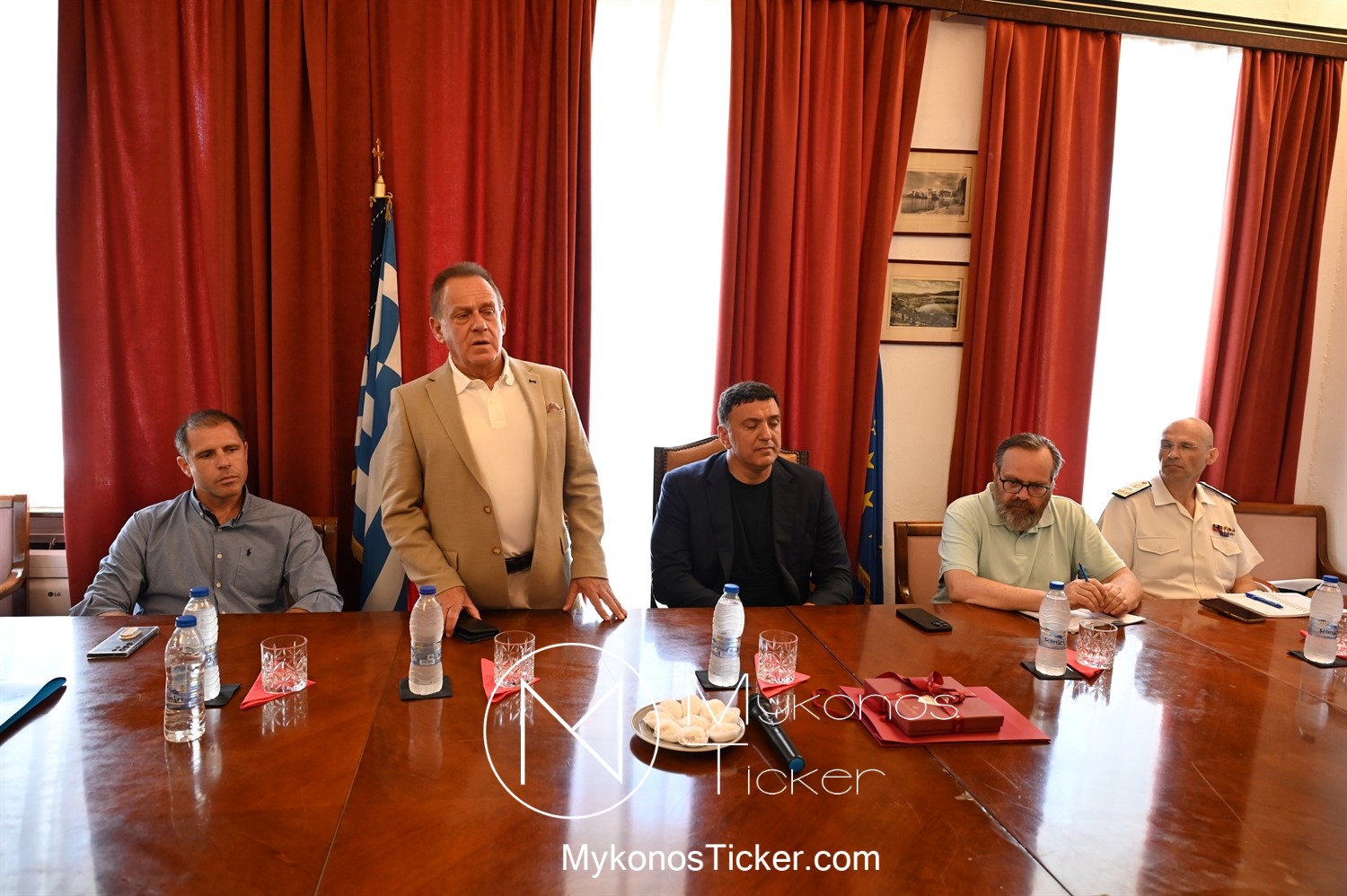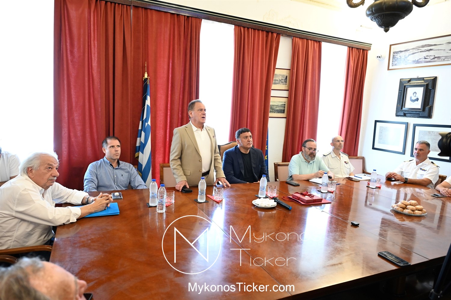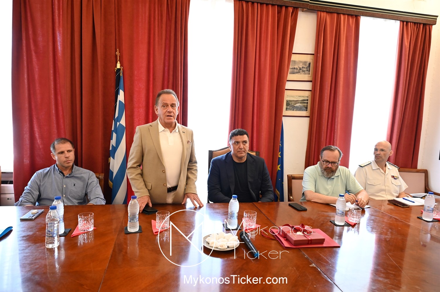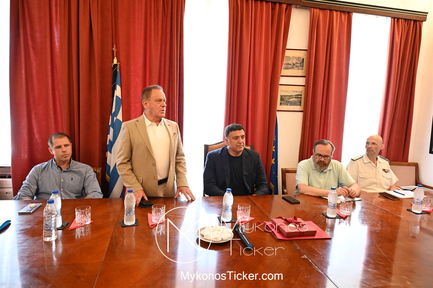 Η διασυνδεσιμότητα του Παλαιού με τον Νέο Λιμένα και η υλοποίηση λιμενικών υποδομών με κλειστό κολυμβητήριο καθώς και ζητήματα που αφορούν την νησιωτική πολιτική, την ασφάλεια, και την ανάπτυξη του νησιού, με έμφαση στις προκλήσεις της θερινής περιόδου, βρέθηκαν στο επίκεντρο της επίσκεψης εργασίας του υπουργού Εμπορικής Ναυτιλίας και Νησιωτικής Πολιτικής, Βασίλη Κικίλια και στη συνάντηση που είχε με τον Δήμαρχο Μυκόνου, Χρήστο Βερώνη και την συμμετοχή εκπροσώπων της Τοπικής Αυτοδιοίκησης και στελεχών του Λιμενικού Σώματος.