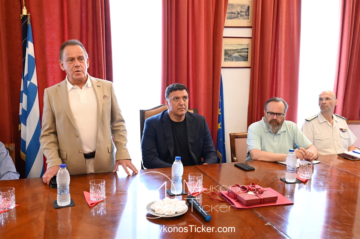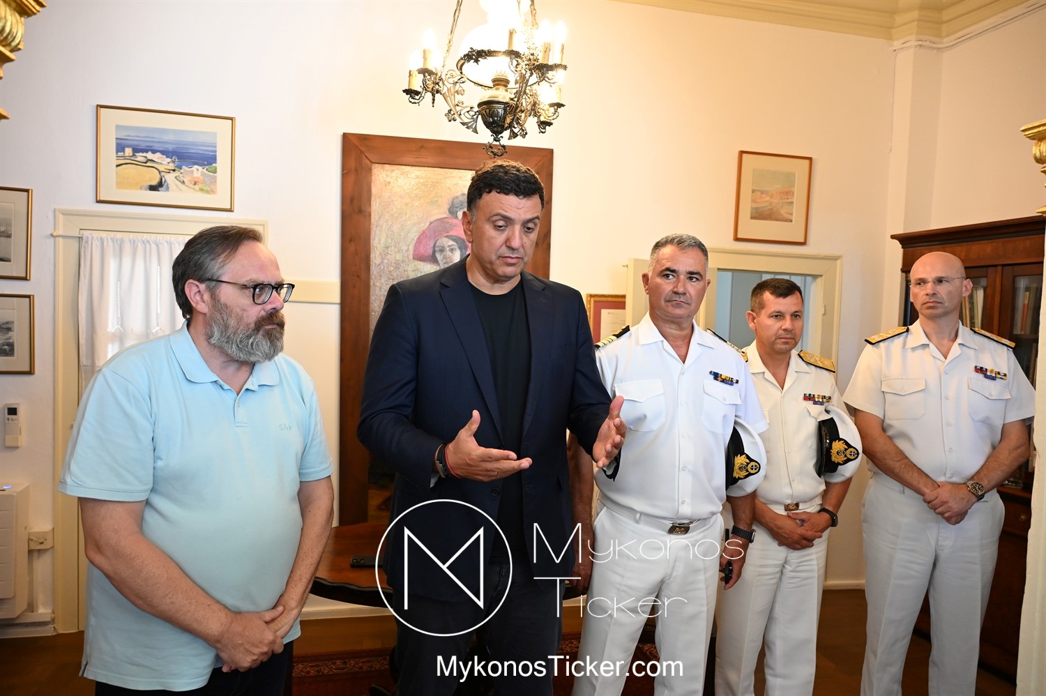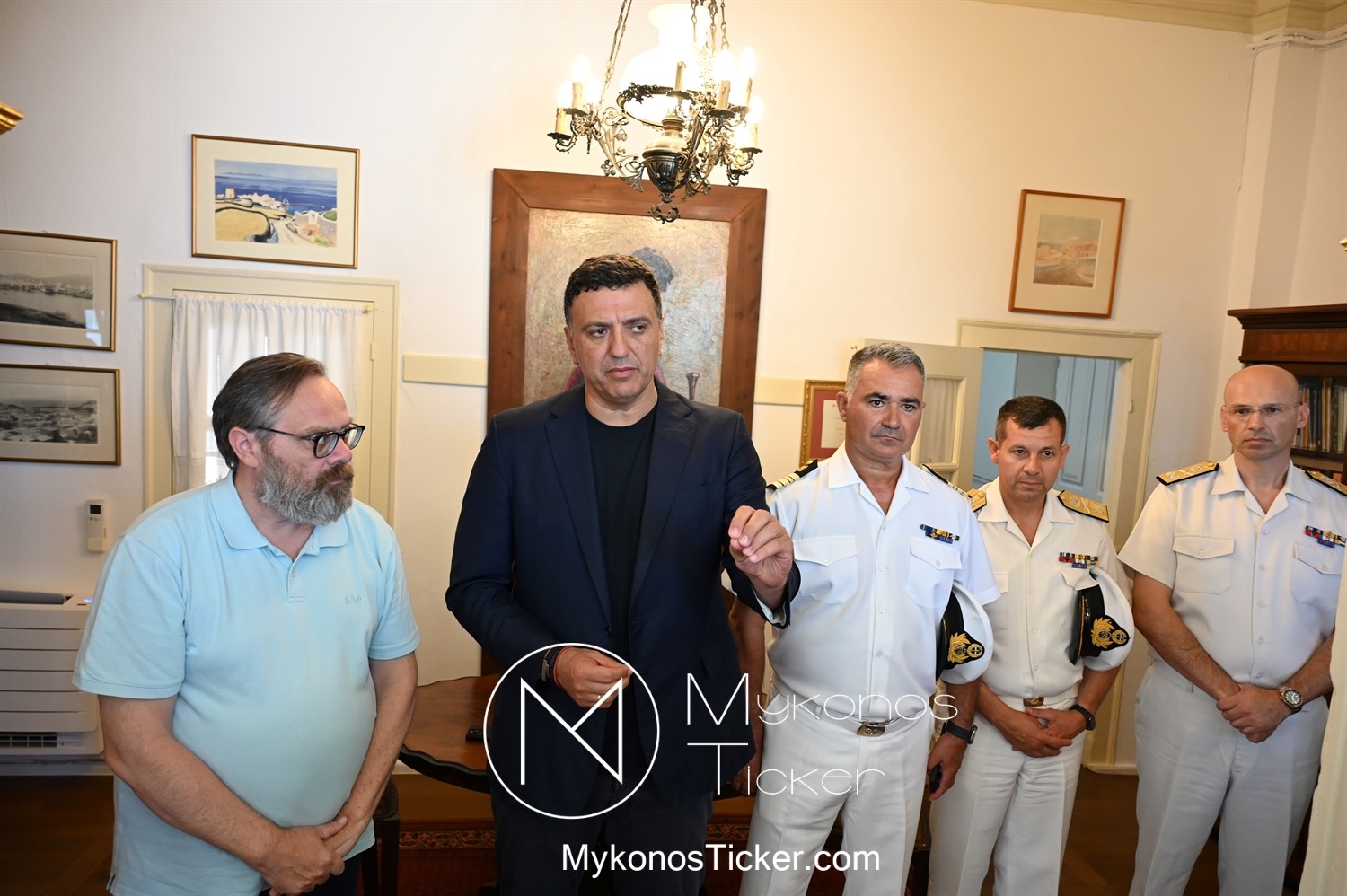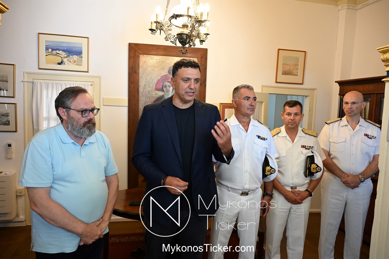 Η διασυνδεσιμότητα του Παλαιού με τον Νέο Λιμένα και η υλοποίηση λιμενικών υποδομών με κλειστό κολυμβητήριο καθώς και ζητήματα που αφορούν την νησιωτική πολιτική, την ασφάλεια, και την ανάπτυξη του νησιού, με έμφαση στις προκλήσεις της θερινής περιόδου, βρέθηκαν στο επίκεντρο της επίσκεψης εργασίας του υπουργού Εμπορικής Ναυτιλίας και Νησιωτικής Πολιτικής, Βασίλη Κικίλια και στη συνάντηση που είχε με τον Δήμαρχο Μυκόνου, Χρήστο Βερώνη και την συμμετοχή εκπροσώπων της Τοπικής Αυτοδιοίκησης και στελεχών του Λιμενικού Σώματος.