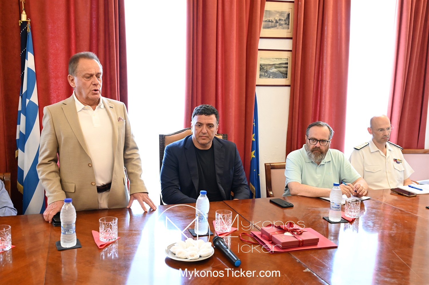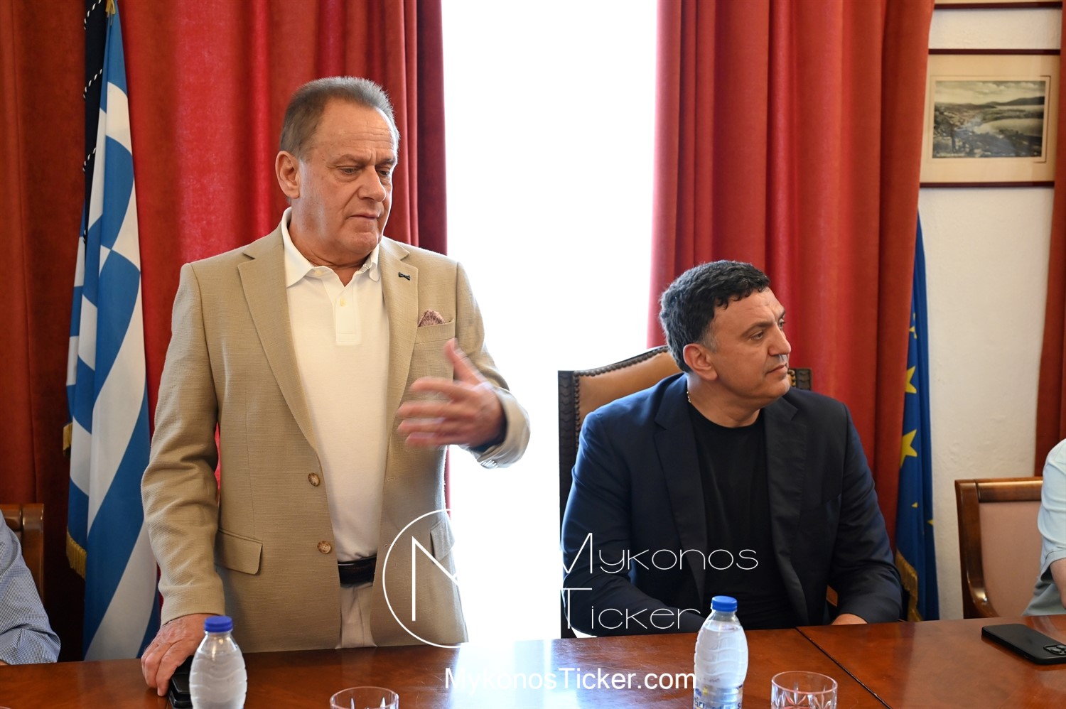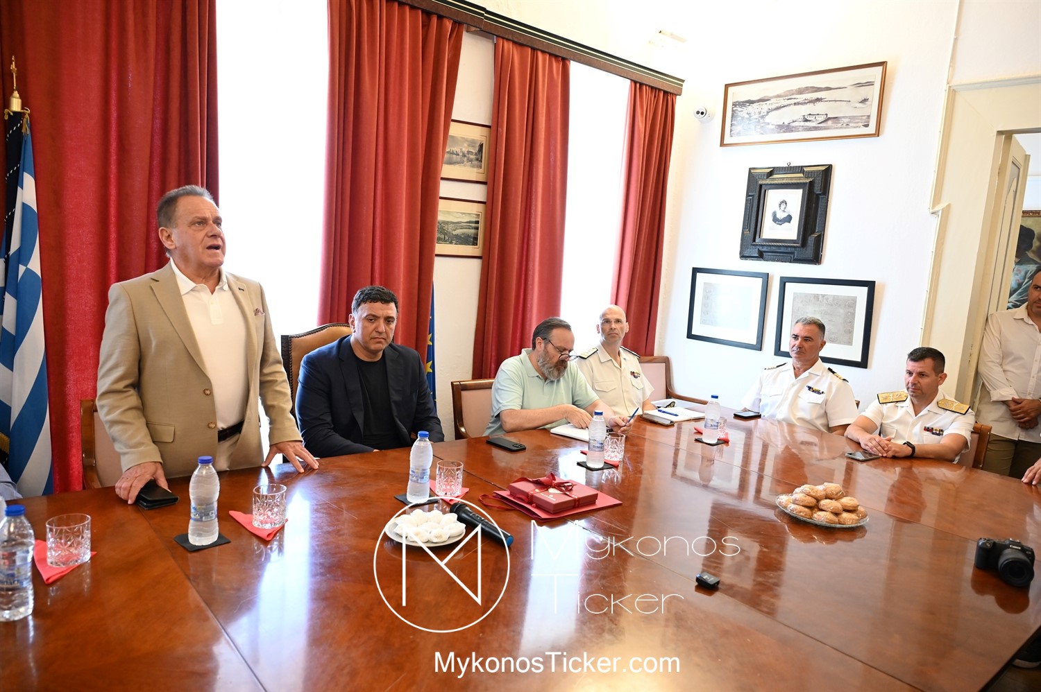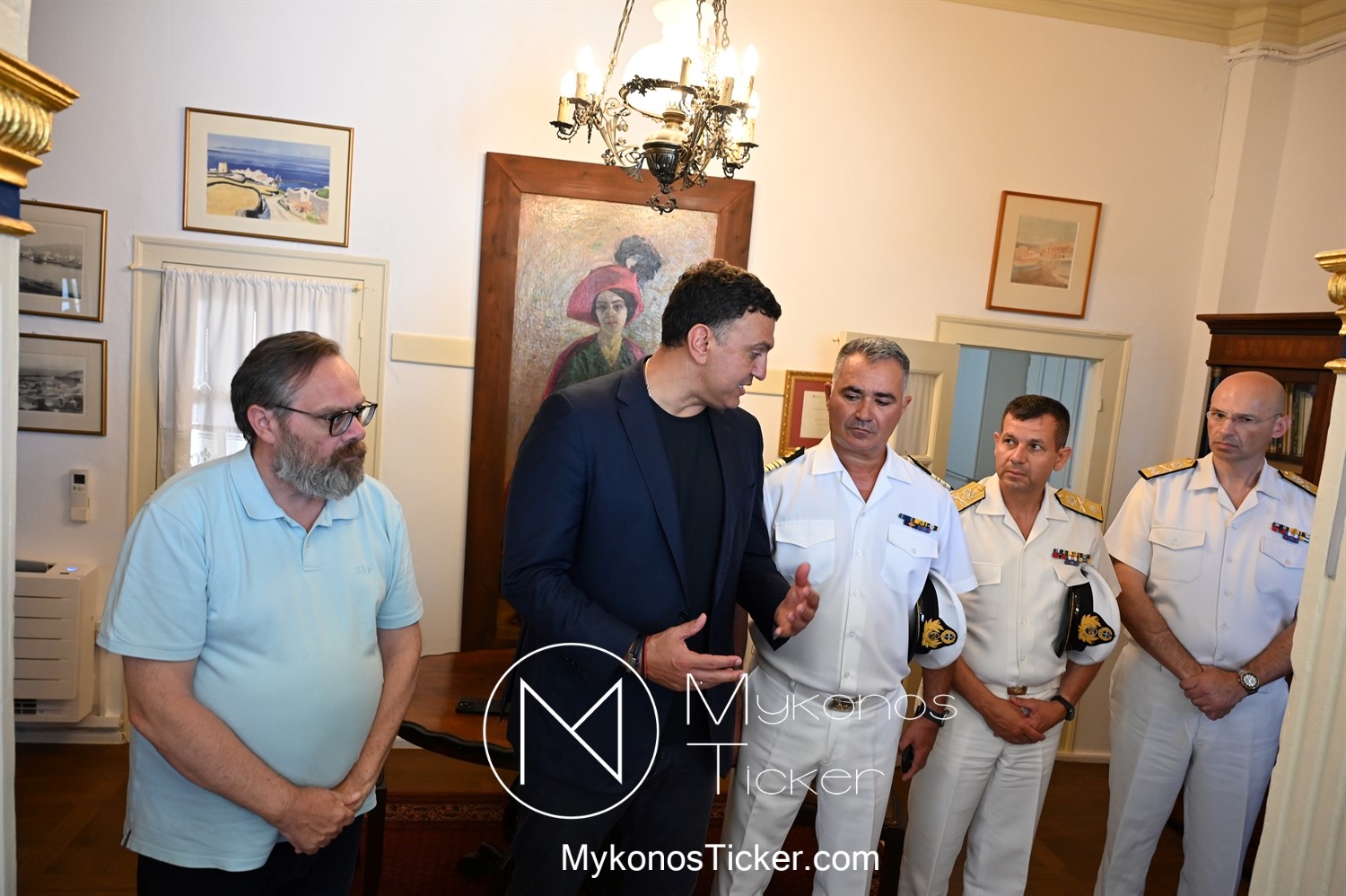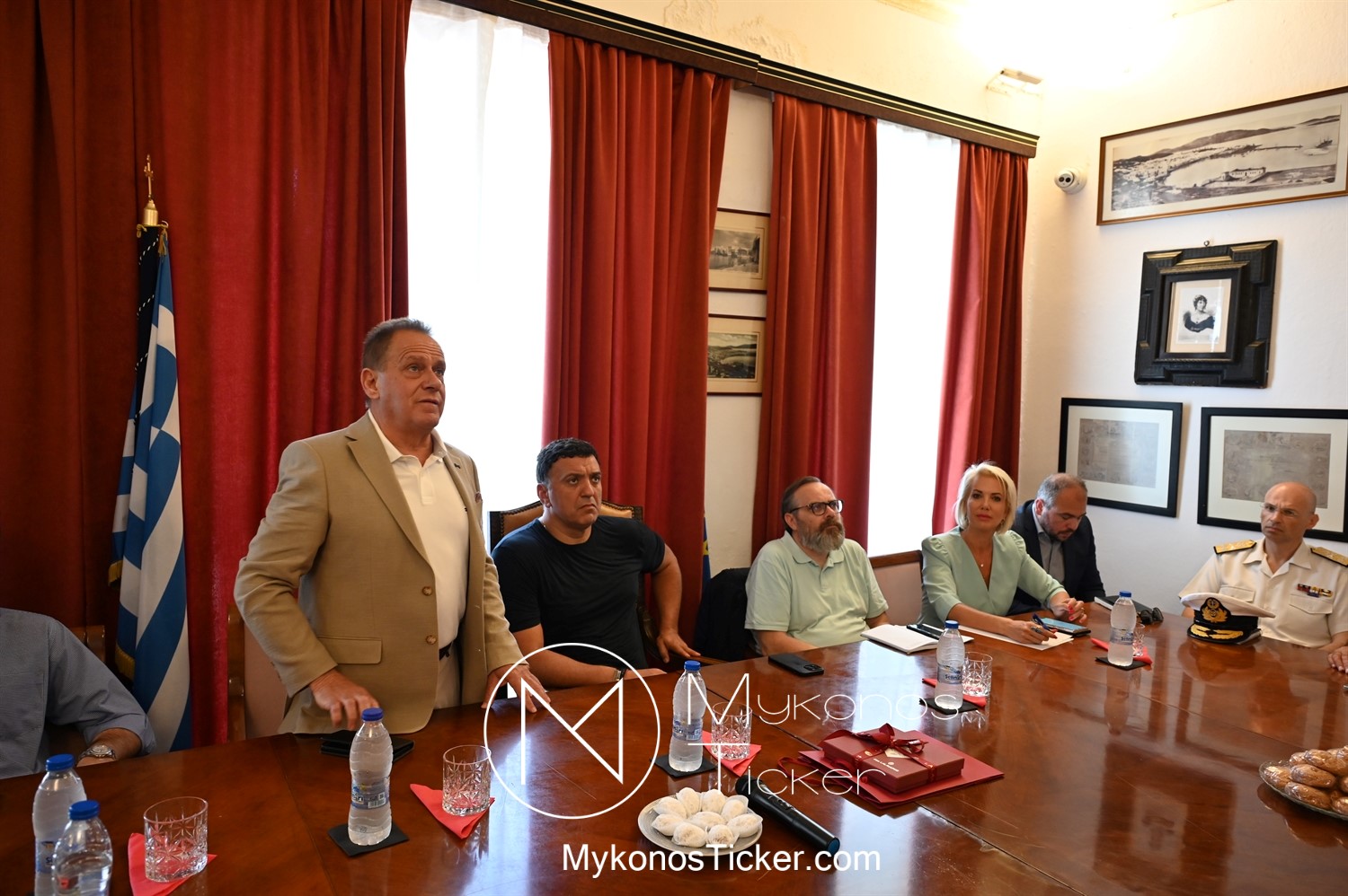 Η διασυνδεσιμότητα του Παλαιού με τον Νέο Λιμένα και η υλοποίηση λιμενικών υποδομών με κλειστό κολυμβητήριο καθώς και ζητήματα που αφορούν την νησιωτική πολιτική, την ασφάλεια, και την ανάπτυξη του νησιού, με έμφαση στις προκλήσεις της θερινής περιόδου, βρέθηκαν στο επίκεντρο της επίσκεψης εργασίας του υπουργού Εμπορικής Ναυτιλίας και Νησιωτικής Πολιτικής, Βασίλη Κικίλια και στη συνάντηση που είχε με τον Δήμαρχο Μυκόνου, Χρήστο Βερώνη και την συμμετοχή εκπροσώπων της Τοπικής Αυτοδιοίκησης και στελεχών του Λιμενικού Σώματος.