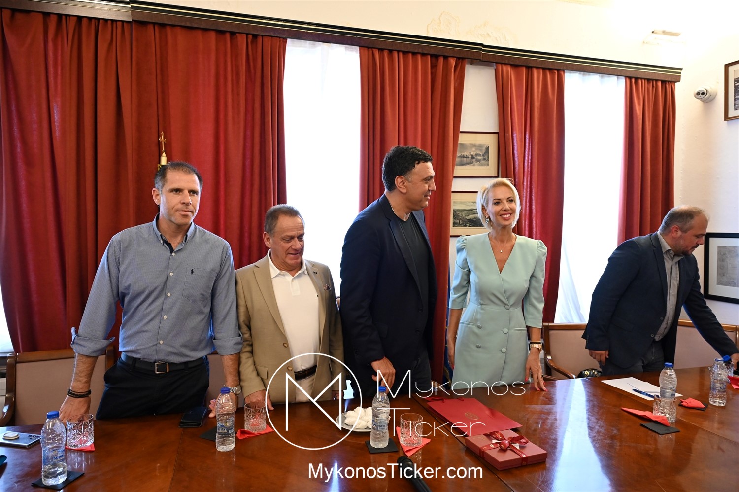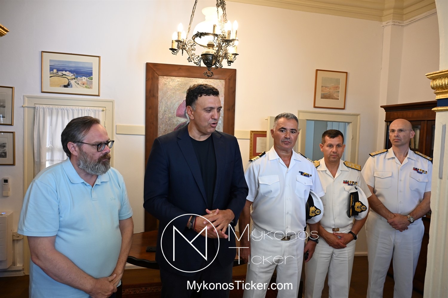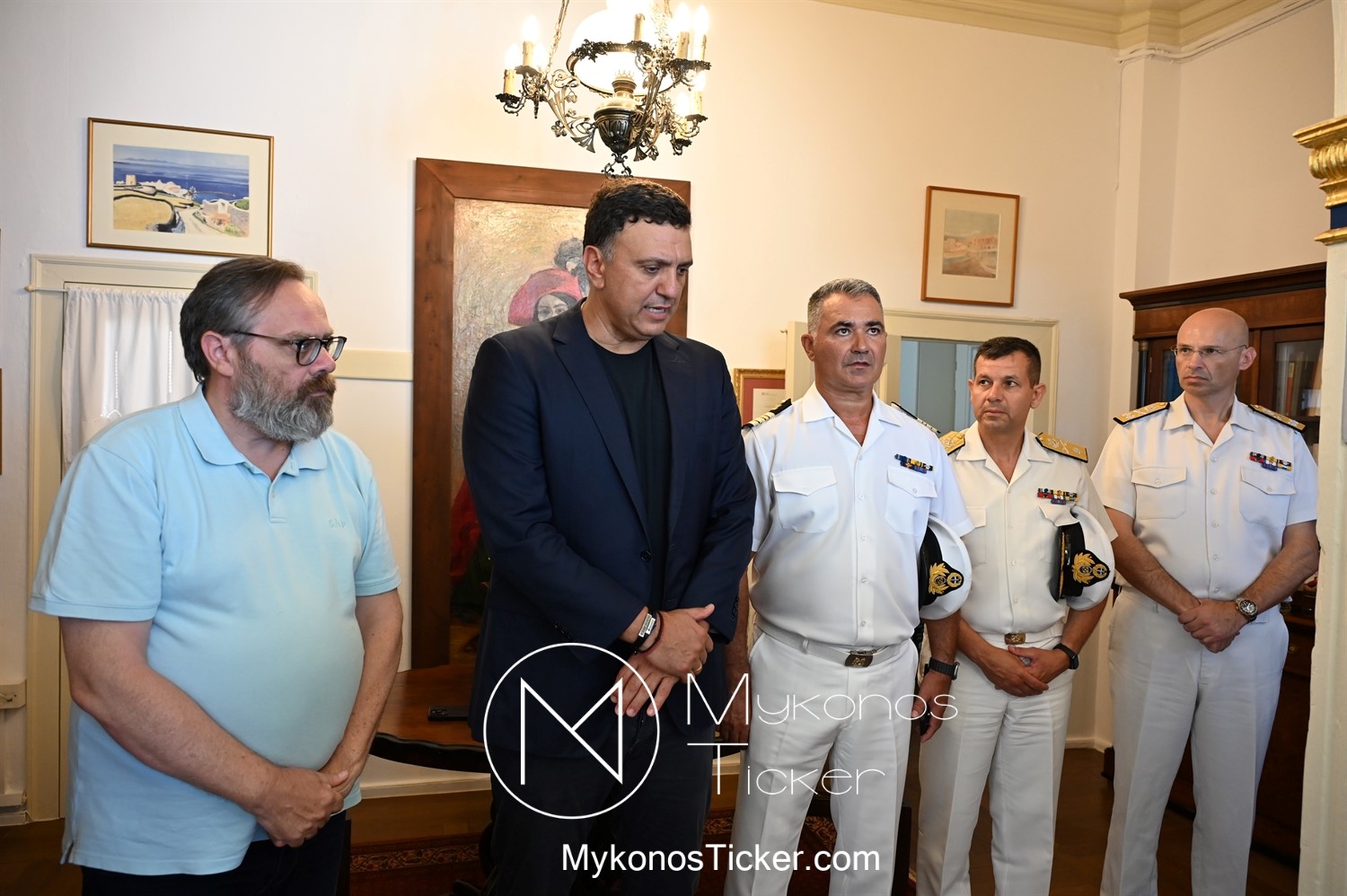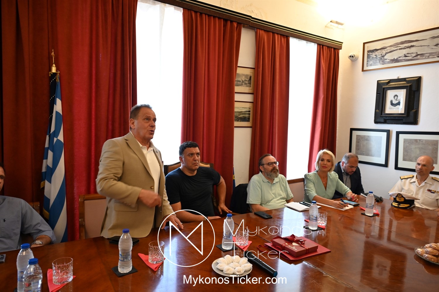 Η διασυνδεσιμότητα του Παλαιού με τον Νέο Λιμένα και η υλοποίηση λιμενικών υποδομών με κλειστό κολυμβητήριο καθώς και ζητήματα που αφορούν την νησιωτική πολιτική, την ασφάλεια, και την ανάπτυξη του νησιού, με έμφαση στις προκλήσεις της θερινής περιόδου, βρέθηκαν στο επίκεντρο της επίσκεψης εργασίας του υπουργού Εμπορικής Ναυτιλίας και Νησιωτικής Πολιτικής, Βασίλη Κικίλια και στη συνάντηση που είχε με τον Δήμαρχο Μυκόνου, Χρήστο Βερώνη και την συμμετοχή εκπροσώπων της Τοπικής Αυτοδιοίκησης και στελεχών του Λιμενικού Σώματος.