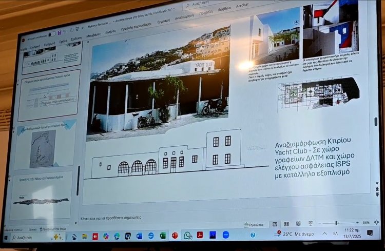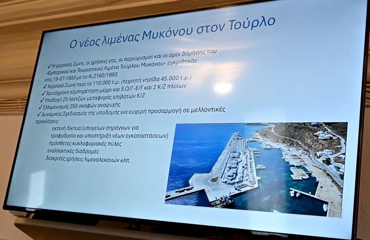 Αυτά είναι οι σκέψεις μας σε επίπεδο προμελετών του Δημοτικού Λιμενικού Ταμείου και του Δήμου της Μυκόνου και δεν είναι νέες σκέψεις, είναι από παλιά είχαν όμως εγκαταλειφθεί.