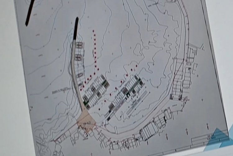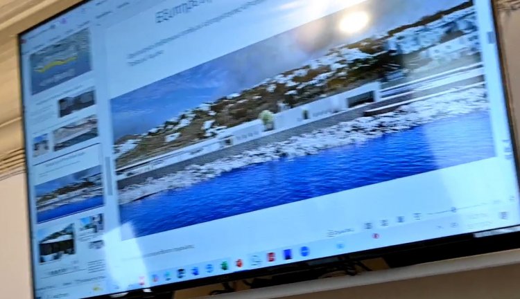 Εδώ είναι ένα τρισδιάστατο μοντέλο μετρητικό καινούργιο που δείχνει το παλιό και το νέο Λιμάνι και θα το χρησιμοποιήσουμε για να κάνουμε τη γέφυρα, μάλλον και τον πεζόδρομο, τον ξύλινο κλπ, όπου δείχνει πώς είναι η περιοχή, εμείς είμαστε εδώ στο παλιό Λιμάνι δεξιά κάτω, δείχνει το έργο της επέκτασης του Παλαιού Λιμένος, δείχνει το νέο λιμάνι και τι προτιθέμεθα να σχεδιάσομε.