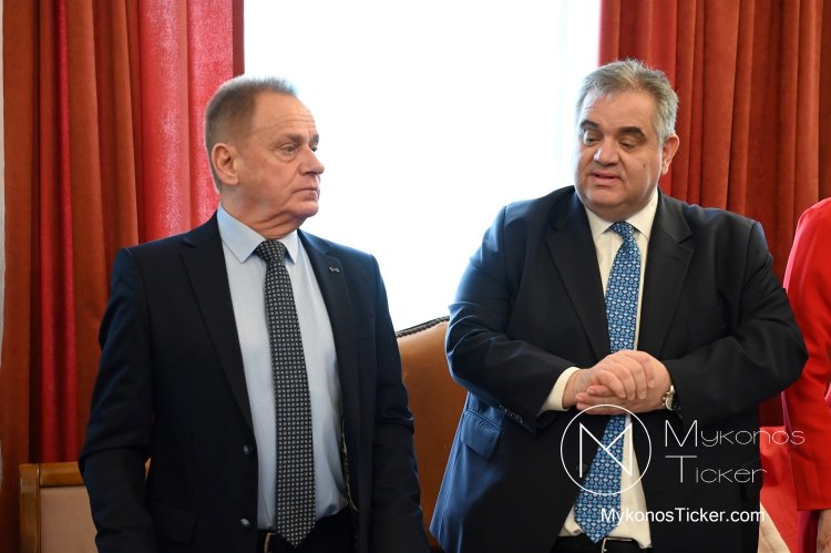 Σε μια επίσκεψη υψηλού πολιτικού και θεσμικού συμβολισμού, ο Υφυπουργός Εσωτερικών Βασίλης Σπανάκης επισκέφθηκε το Δημαρχείο Μυκόνου, θέτοντας επί τάπητος τα έργα υποδομής και τη θεσμική αναδιοργάνωση που προωθεί η κυβέρνηση για το νησί. Η συνάντηση αναδείχθηκε σε πλατφόρμα ουσιαστικών ανακοινώσεων, με στόχο την επιτάχυνση των έργων και την εφαρμογή του Νέου Κώδικα Αυτοδιοίκησης.