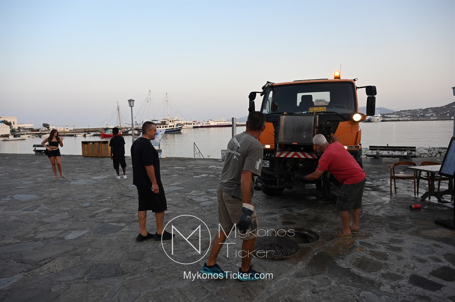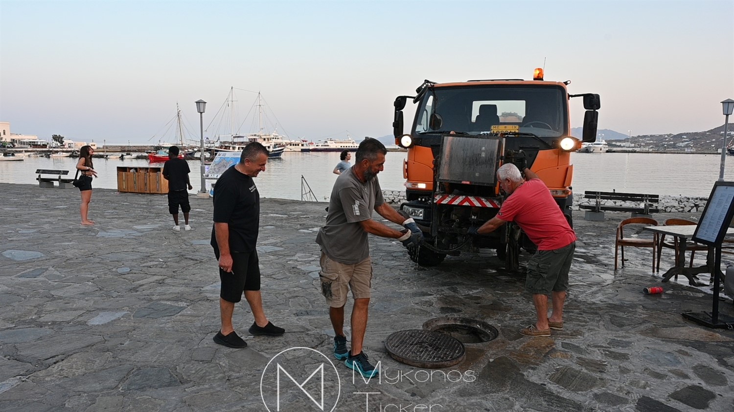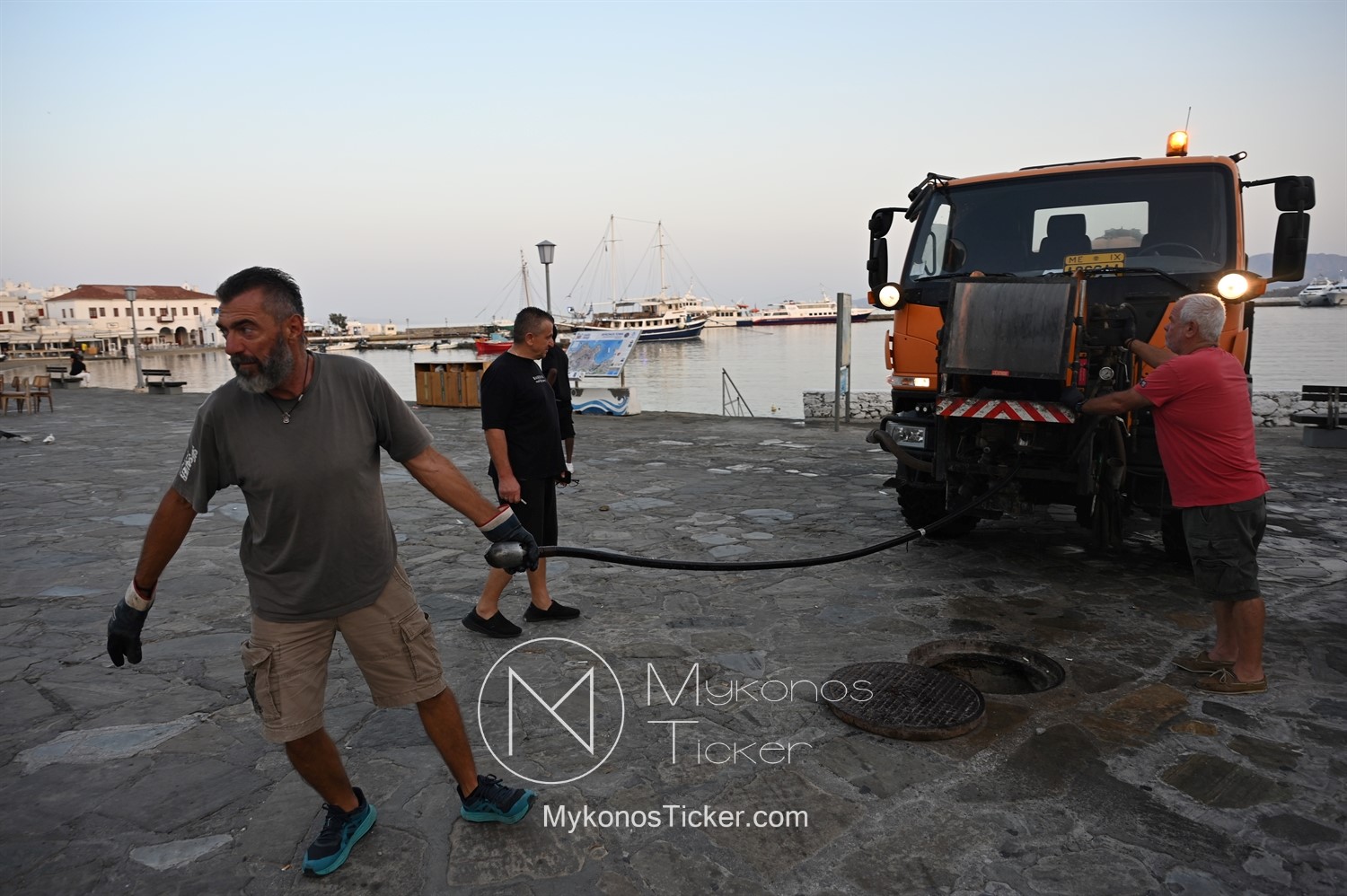 Mykonos Water Supply and Sewerage Company [DEYAM] / Προγραμματισμένες εργασίες καθαρισμού φρεατίων - αγωγών απoχέτευσηs με υδροβολή και αντλιοστασίου λυμάτων στην Παραλία, Xώpας Mυκόvoυ