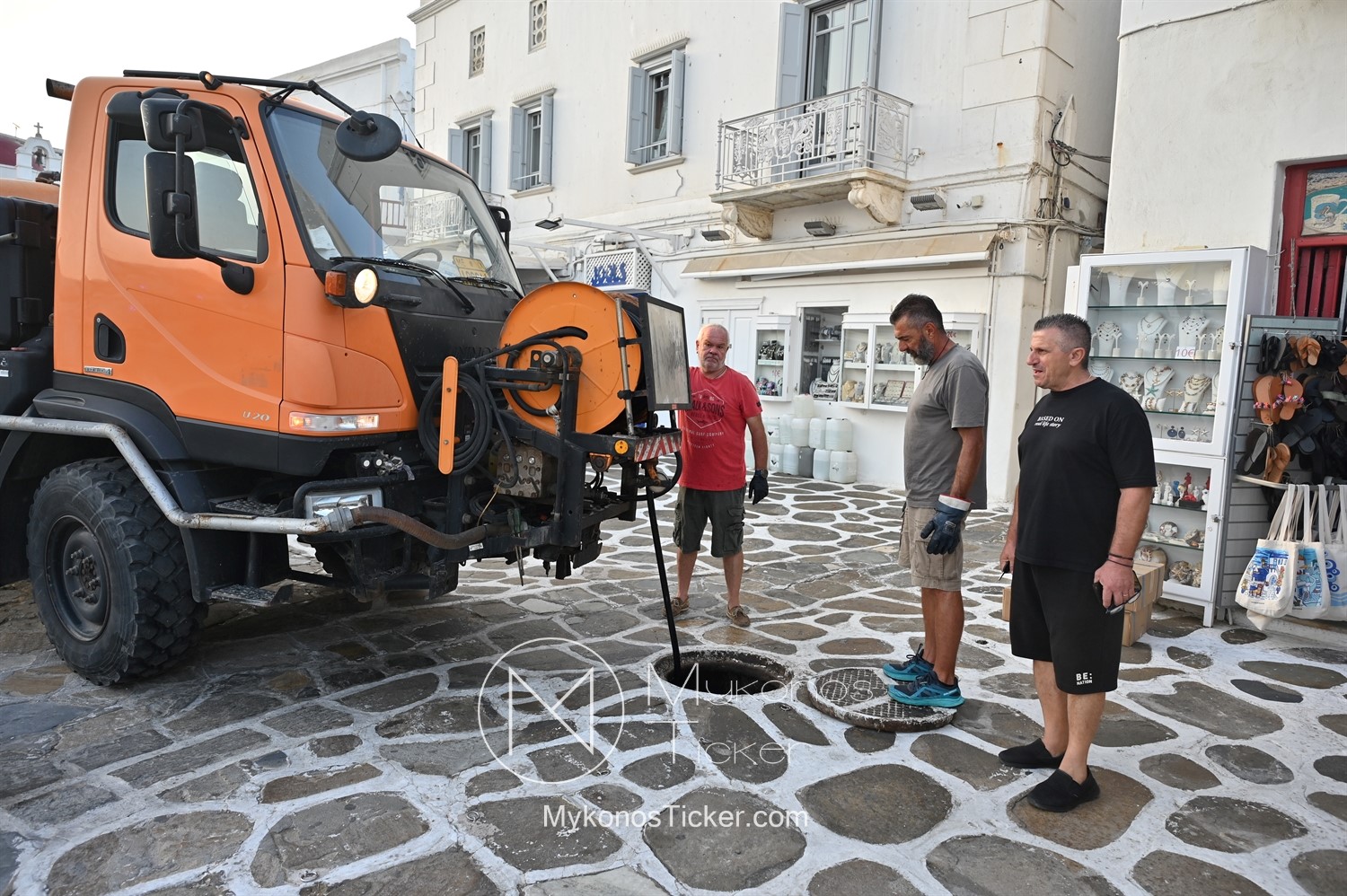ΔΕΥΑ Μυκόνου: Προγραμματισμένες εργασίες καθαρισμού φρεατίων - αγωγών απoχέτευσηs με υδροβολή και αντλιοστασίου λυμάτων στην Παραλία, Xώpας Mυκόvoυ [Εικόνες & Video]