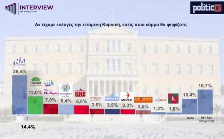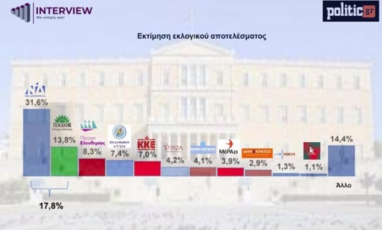New Interview poll shows New Democracy leading at 31.6% over PASOK. Ο Κ. Μητσοτάκης κυριαρχεί, αλλά το 69% αμφισβητεί την αυτοδυναμία. Δείτε τα αναλυτικά γραφήματα