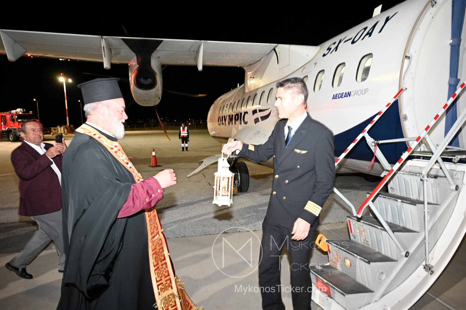 Το βράδυ του Μεγάλου Σαββάτου, το Αεροδρόμιο Μυκόνου ‘Μαντώ Μαυρογένους’ μετατράπηκε σε επίκεντρο μιας τελετουργίας με έντονο θεσμικό και πνευματικό αποτύπωμα. Η δημοτική αρχή, υπό τον Δήμαρχο Χρήστο Βερώνη, υποδέχθηκε το Άγιο Φως με ύψιστες τιμές, επιβεβαιώνοντας στην πράξη την επιχειρησιακή ετοιμότητα και τη συλλογική συνοχή του νησιού.