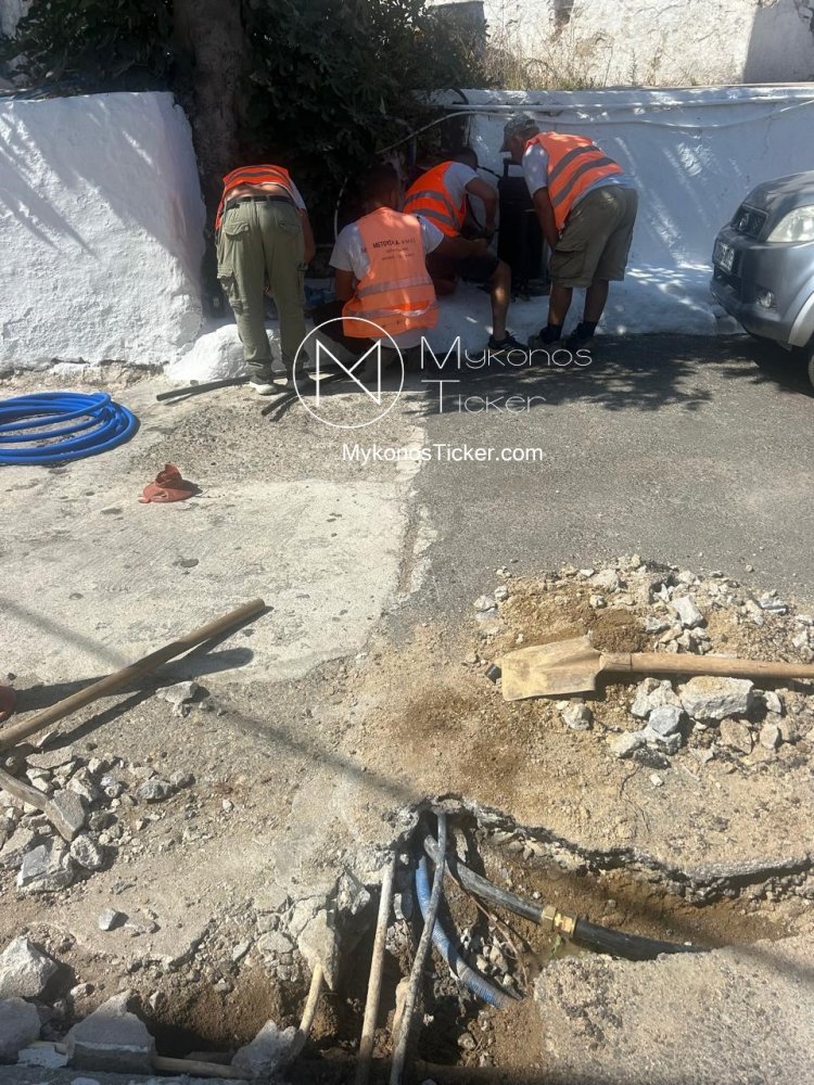 Η Δημοτική Επιχείρηση Υδρευσης και Αποχέτευσης Μυκόνου ανταποκρίθηκε στο χρονίζον αίτημα των κατοίκων και των επιχειρήσεων στην Πλατεία Ανω Μεράς, το οποίο αξιολόγησε ως άμεσο και επιτακτικό, και προχώρησε στην υλοποίηση της αντικατάστασης του υφιστάμενου μεταλλικού σιδηροσωλήνα τροφοδοσίας που λόγω παλαιότητας δημιουργούσε συνεχείς βλάβες (θραύσεις, σχισίματα).
