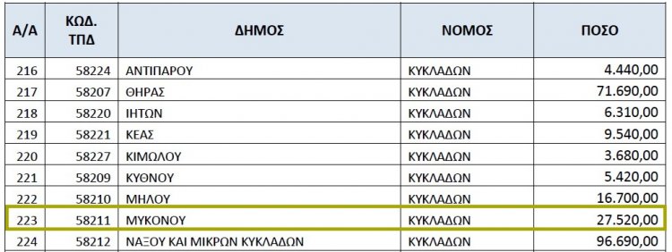 Η Απόφαση με το ακριβές ποσό που δίνεται στον Δήμο Μυκόνου