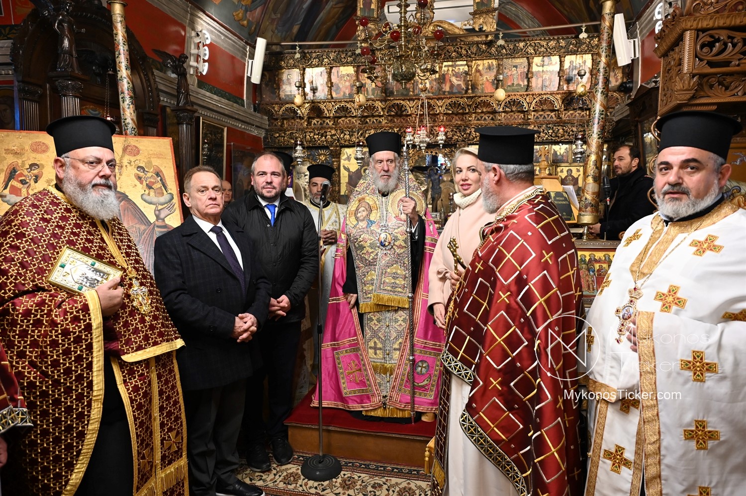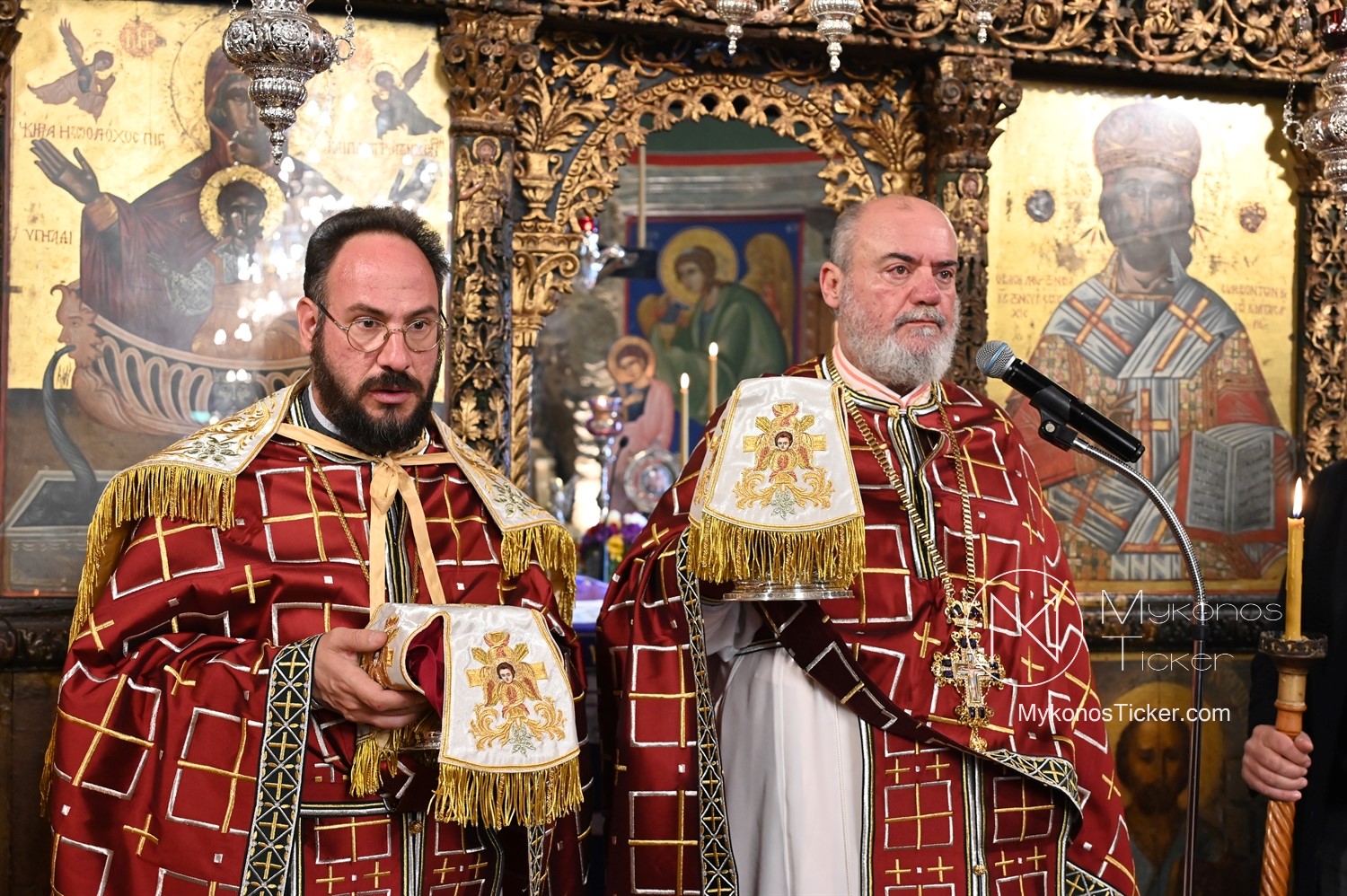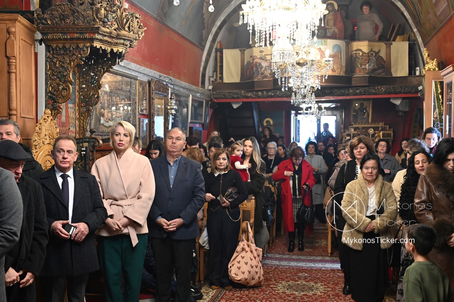 Η Συνοδική Θεία Λειτουργία τελέστηκε με κάθε ιεροπρέπεια από τον Αρχιερατικό Επίτροπο Δήλου και Μυκόνου, Αιδεσιμολογιώτατο π. Πέτρο Μαραγκό, συλλειτουργούντος του Αιδεσιμολογιώτατου π. Γεωργίου Κουσαθανά. Επιβεβαιώνοντας την άρρηκτη συμπόρευση της τοπικής κοινωνίας με την Εκκλησία, δίπλα στον Δήμαρχο Χρήστο Βερώνη, παρέστησαν οι Βουλευτές Κυκλάδων, Κατερίνα Μονογυιού και Φίλιππος Φόρτωμας, καθώς και πλήθος Δημοτικών και Περιφερειακών Συμβούλων.