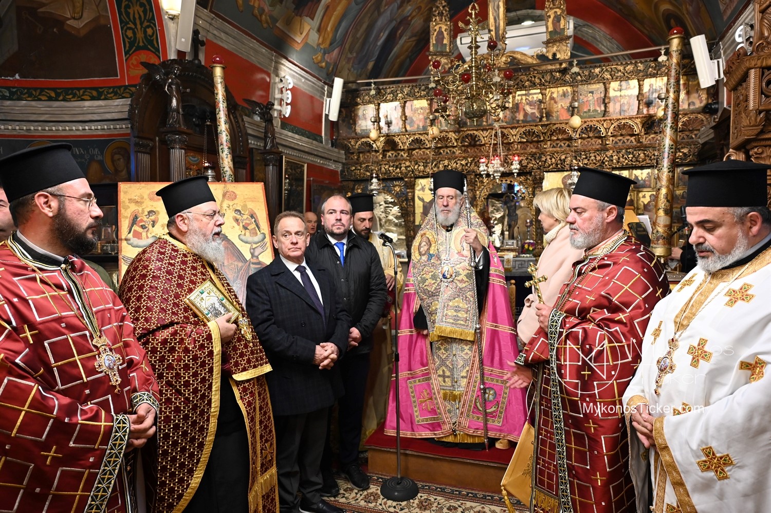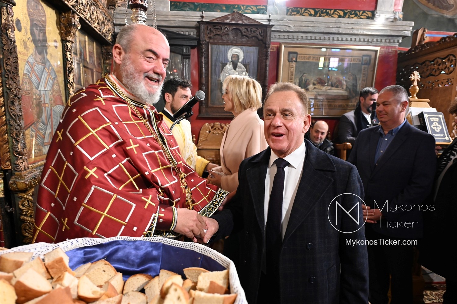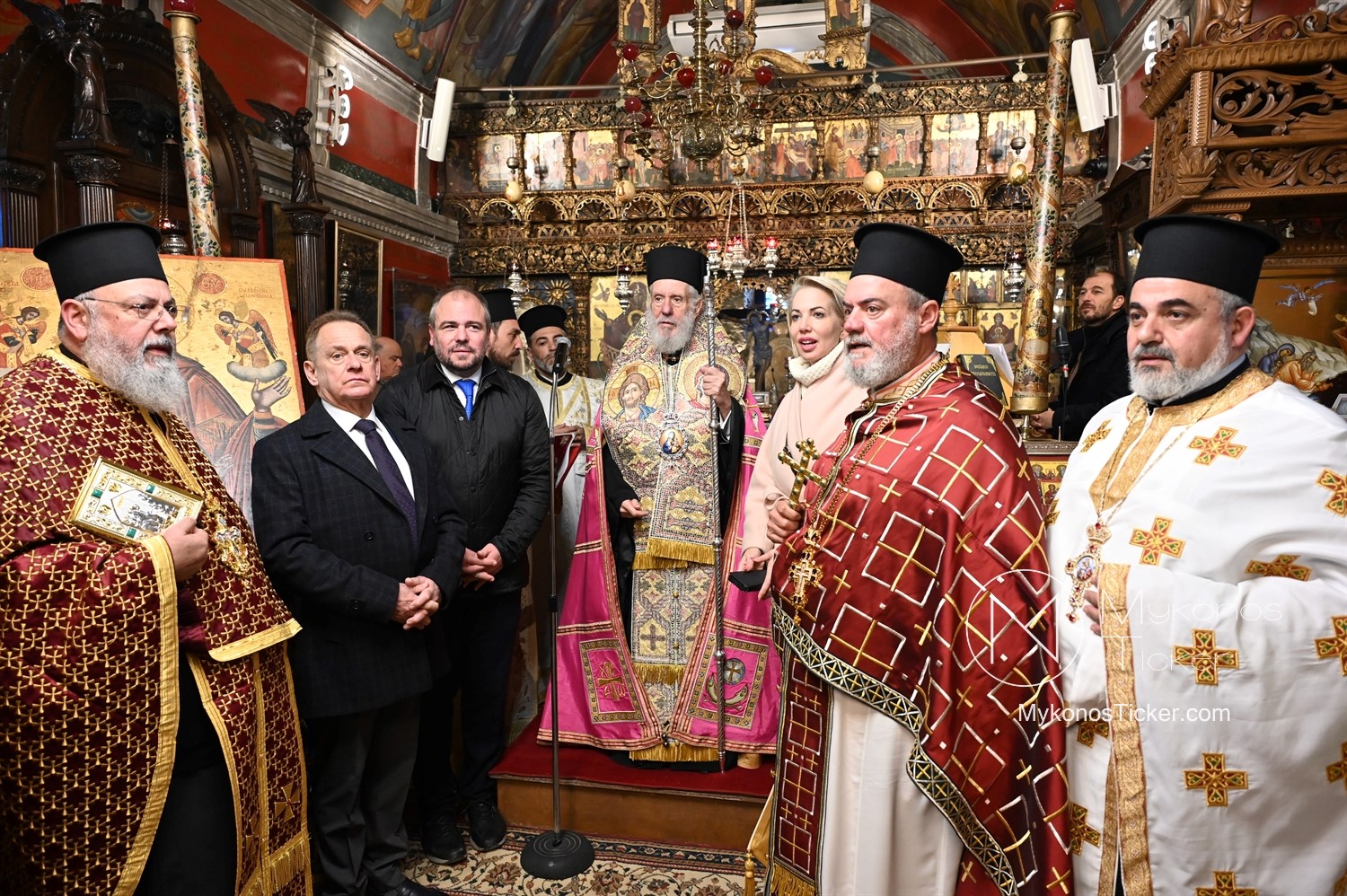 Στον Ι.Μ.Ν. Μεγάλης Παναγιάς παρευρέθηκε ο Δήμαρχος Μυκόνου κ. Χρήστος Βερώνης, οι Βουλευτές Κυκλάδων κα Κατερίνα Μονογυιού και κ. Φίλιππος Φόρτωμας, καθώς και μέλη του Δημοτικού Συμβουλίου.