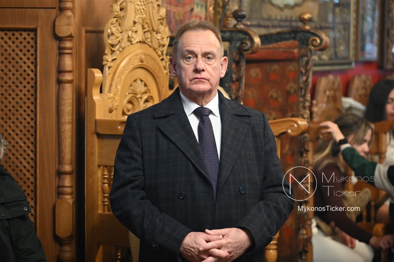 Θεσμική Παρουσία: Συμπροσευχόμενος παρέστη ο Δήμαρχος Μυκόνου Χρήστος Βερώνης, πλαισιωμένος από κοινοβουλευτικούς και τοπικούς αξιωματούχους στον Ι.Μ.Ν. Μεγάλης Παναγιάς.