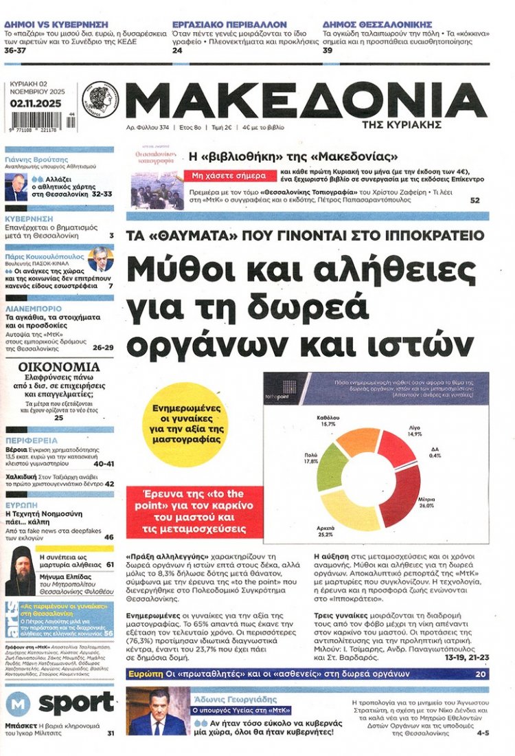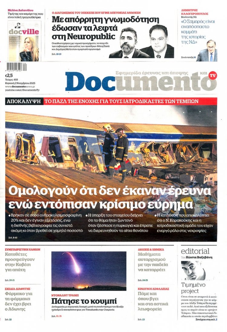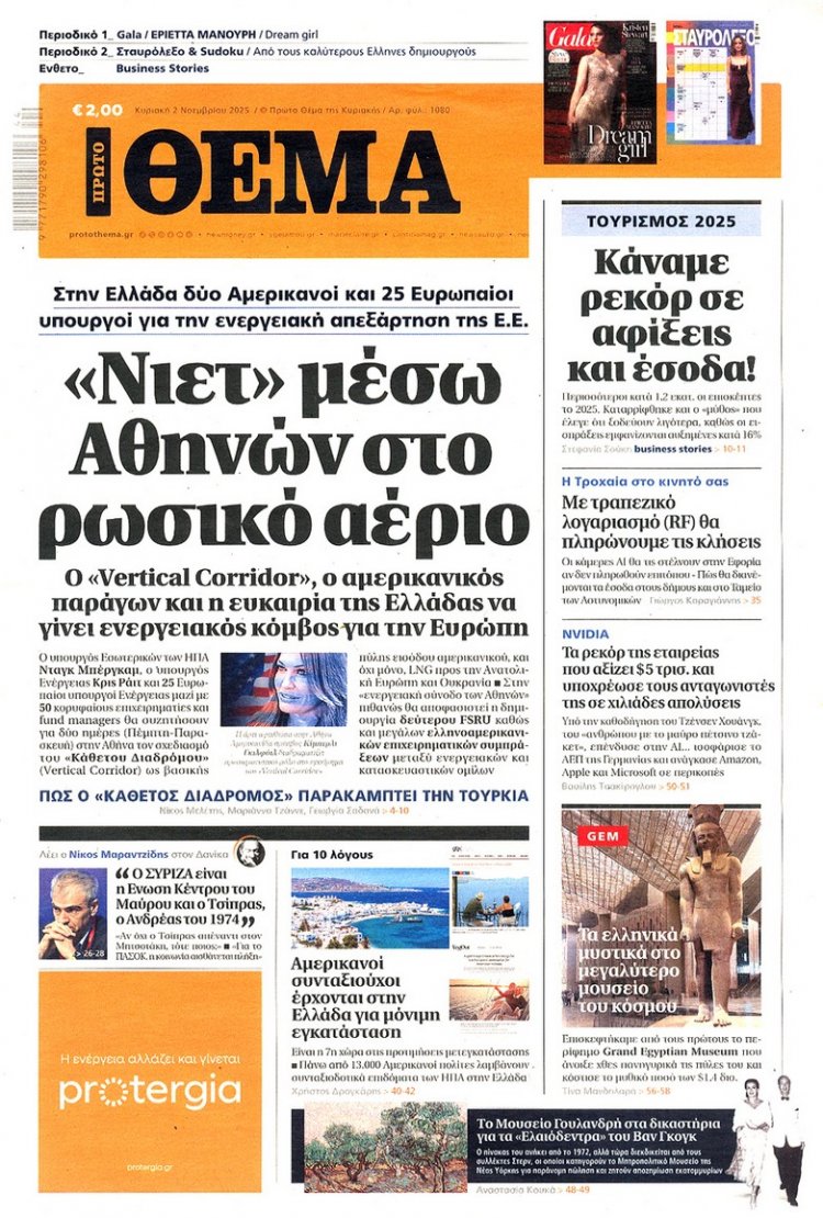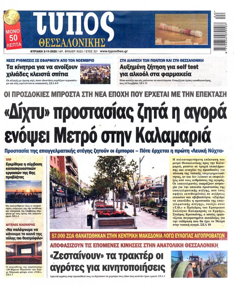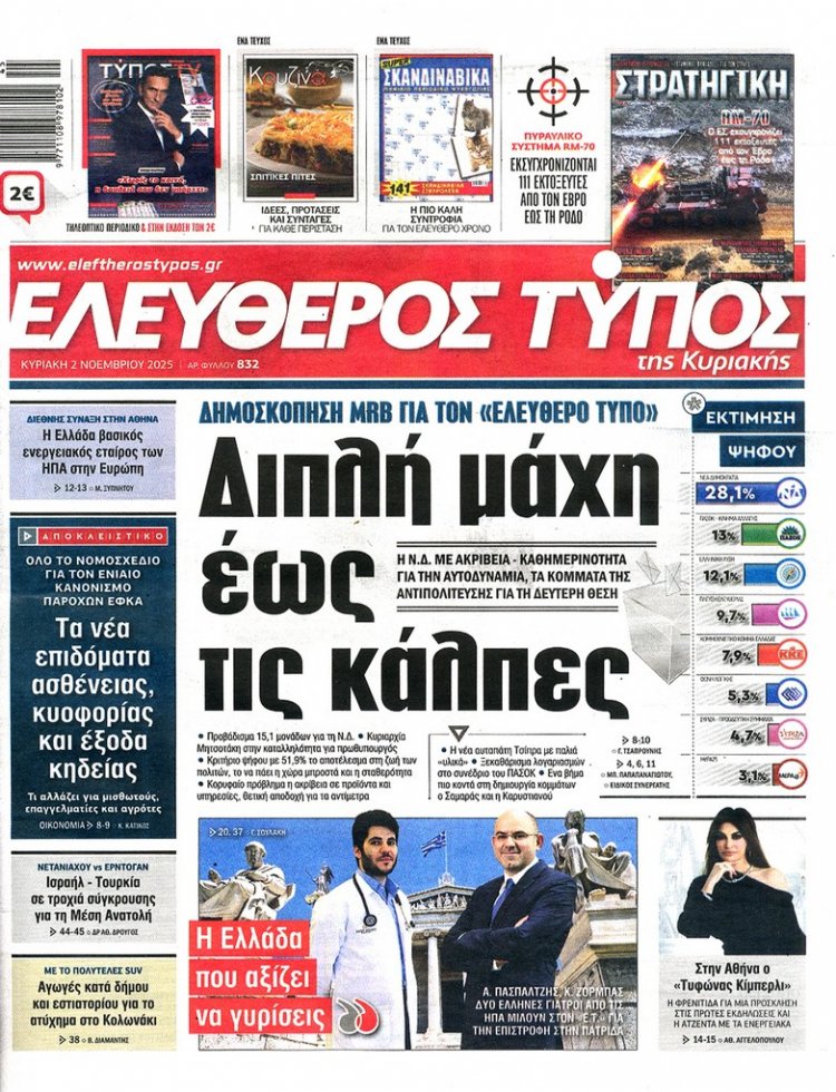 Sunday's front pages: Τα Πρωτοσέλιδα και τα Οπισθόφυλλα των εφημερίδων της Κυριακής 2 Νοεμβρίου 2025