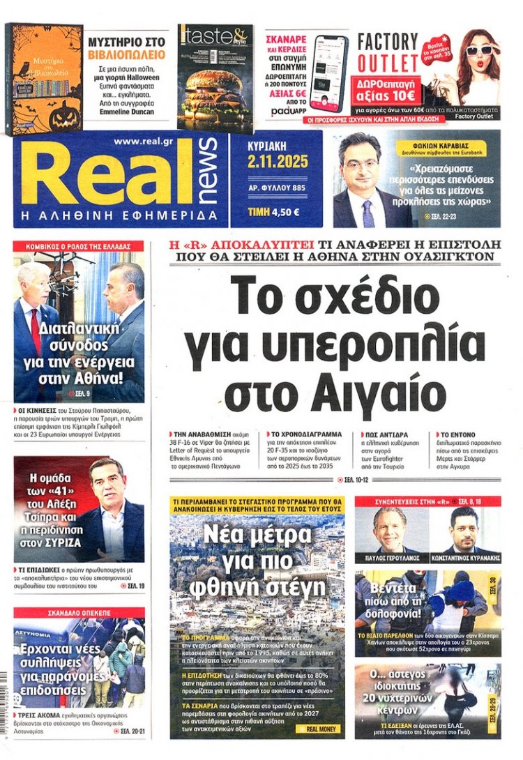 Διαβάστε τα 16 πρώτα Πρωτοσέλιδα και τα Οπισθόφυλλα των Κυριακάτικων Εφημερίδων της Κυριακής 2 Νοεμβρίου 2025