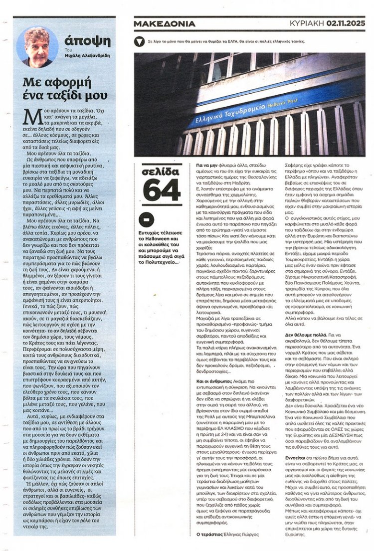 Τι γράφει ο Κυριακάτικος Τύπος - Διαβάστε τα 16 πρώτα Πρωτοσέλιδα και τα Οπισθόφυλλα των Κυριακάτικων Εφημερίδων της Κυριακής 2 Νοεμβρίου 2025 - Η ανάρτηση ανανεώνεται συνεχώς!!